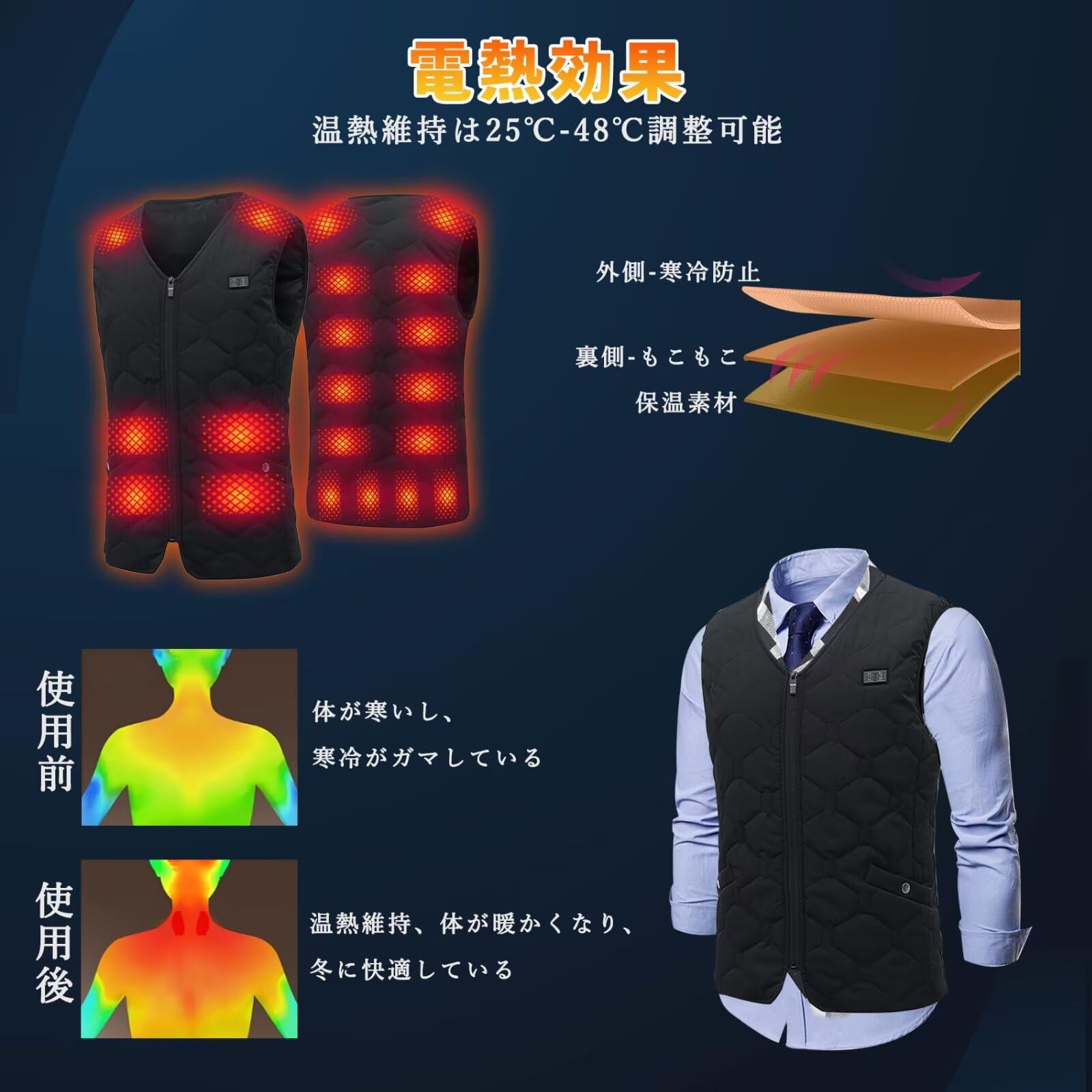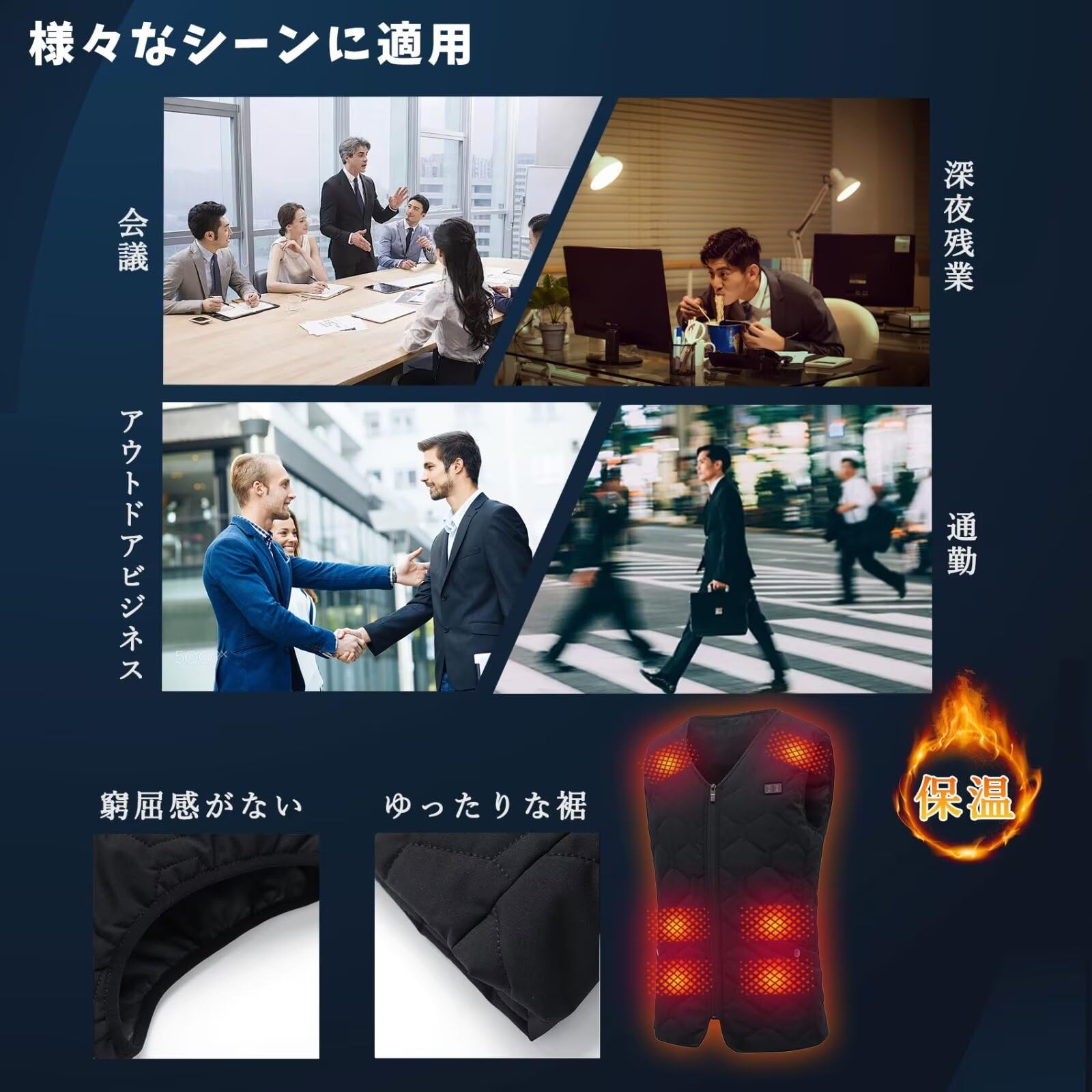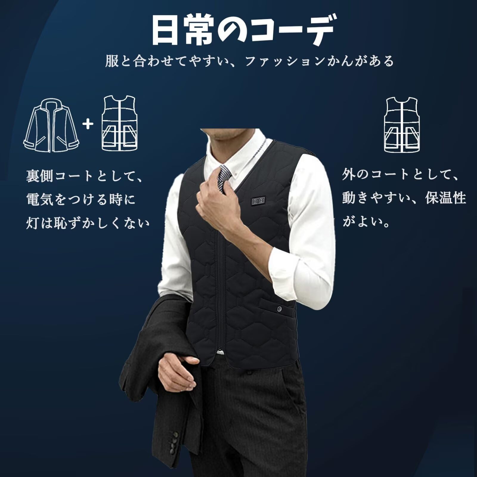 着用便利:ベストはバッテリ納めるポケット付き、ベストとして、重くない、人間工学に基づいたフィット感 を感じて、インナーベストをするには快適です。そして外側は長袖コートを着ると、外出に電気の光からの恥ずかしさを避けなっています。