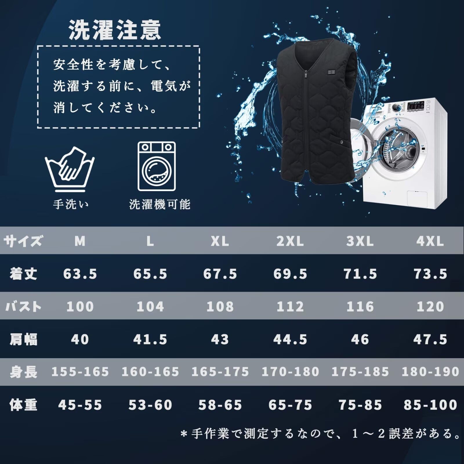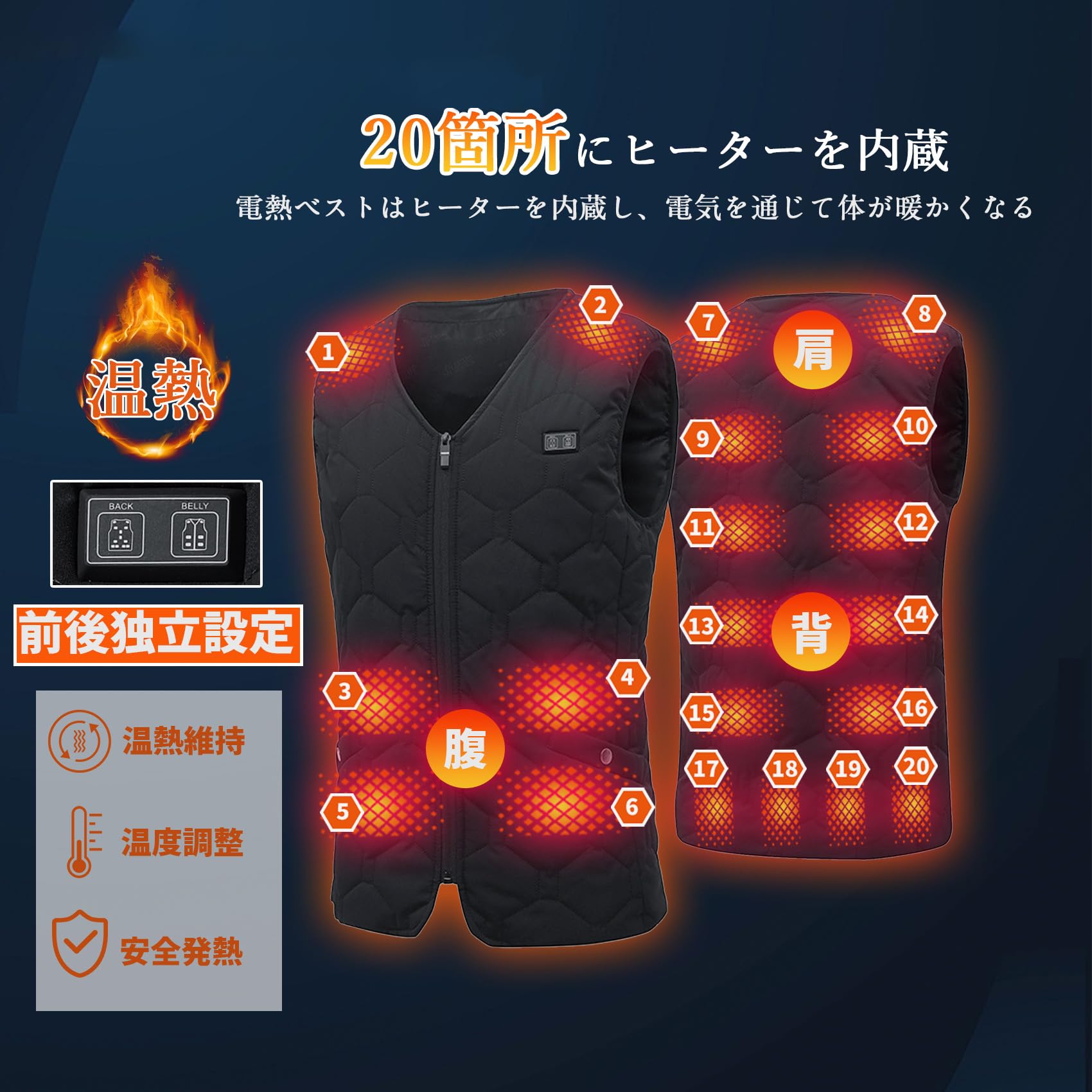 [HEWEAYTA] 電熱ベスト 大きいサイズ 21 20 16箇所発熱 加熱ベスト 45-110kg 男女兼用 発熱ベスト 防風防寒ベスト 防寒ベスト 前後独立温度設定 バッテリなし