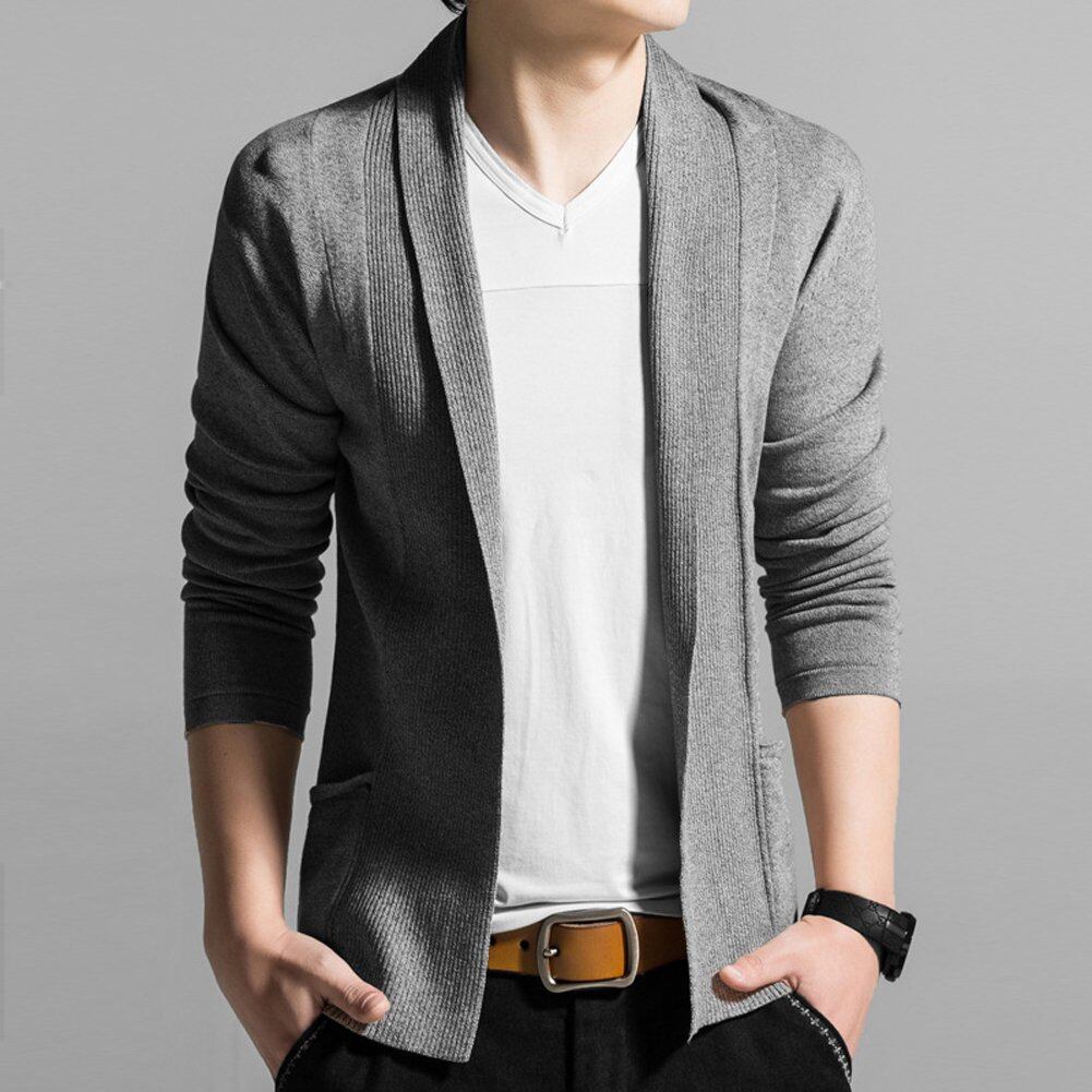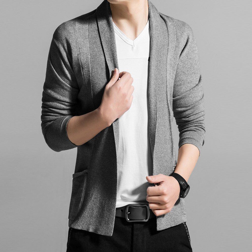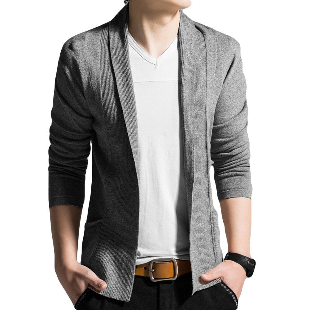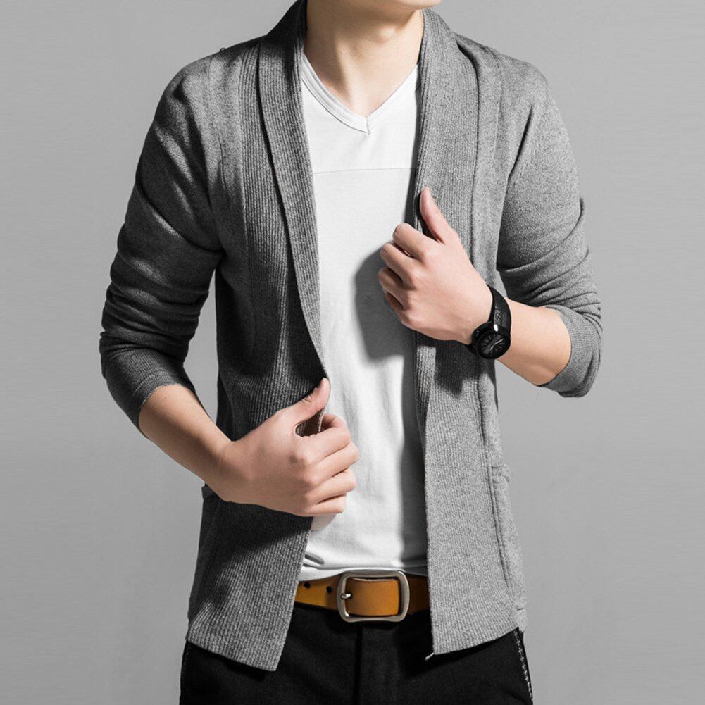 [チーアン] メンズ カーディガン 羽織 襟付き ニットカーディガン カーデ ストレッチ コットン 着回し ジャケット風