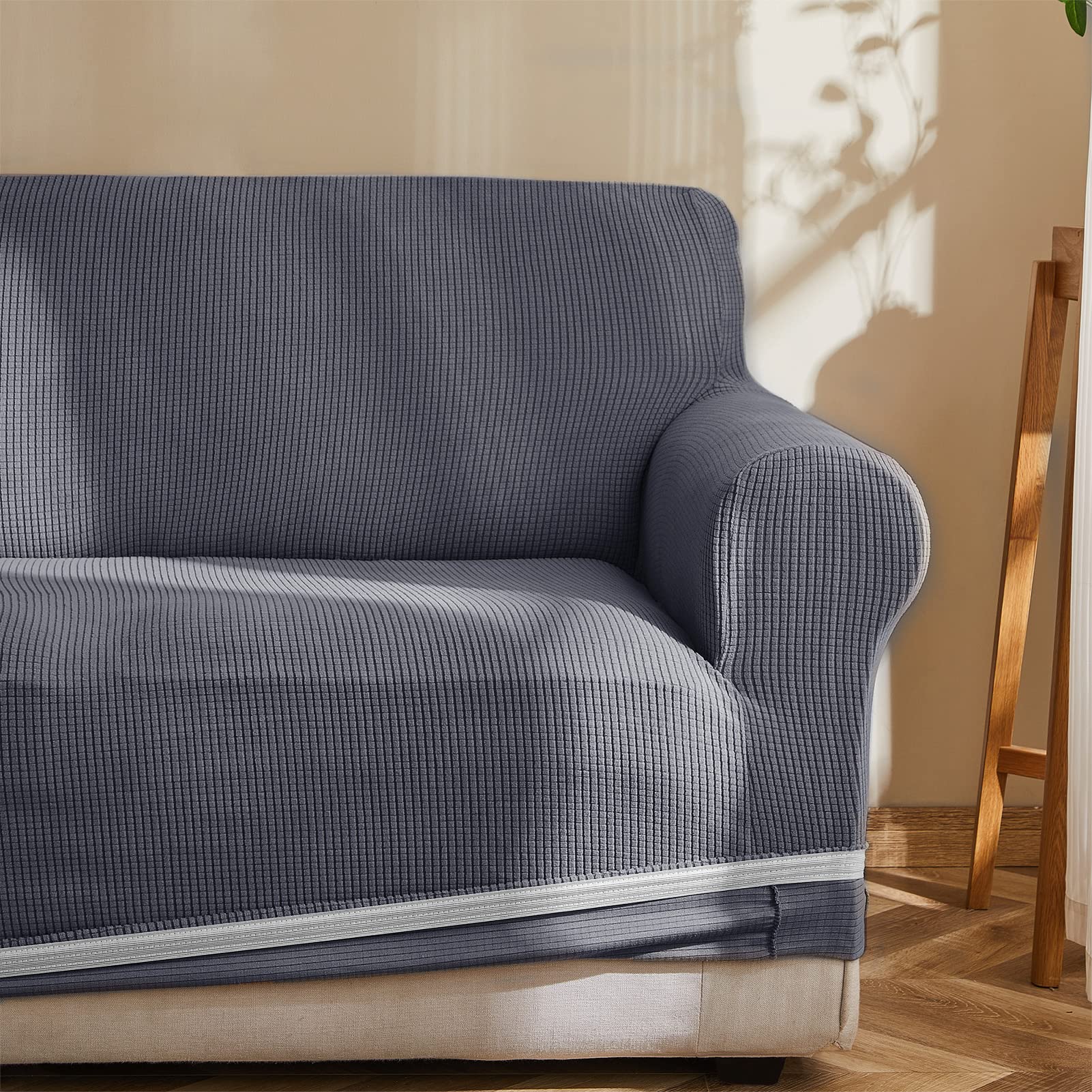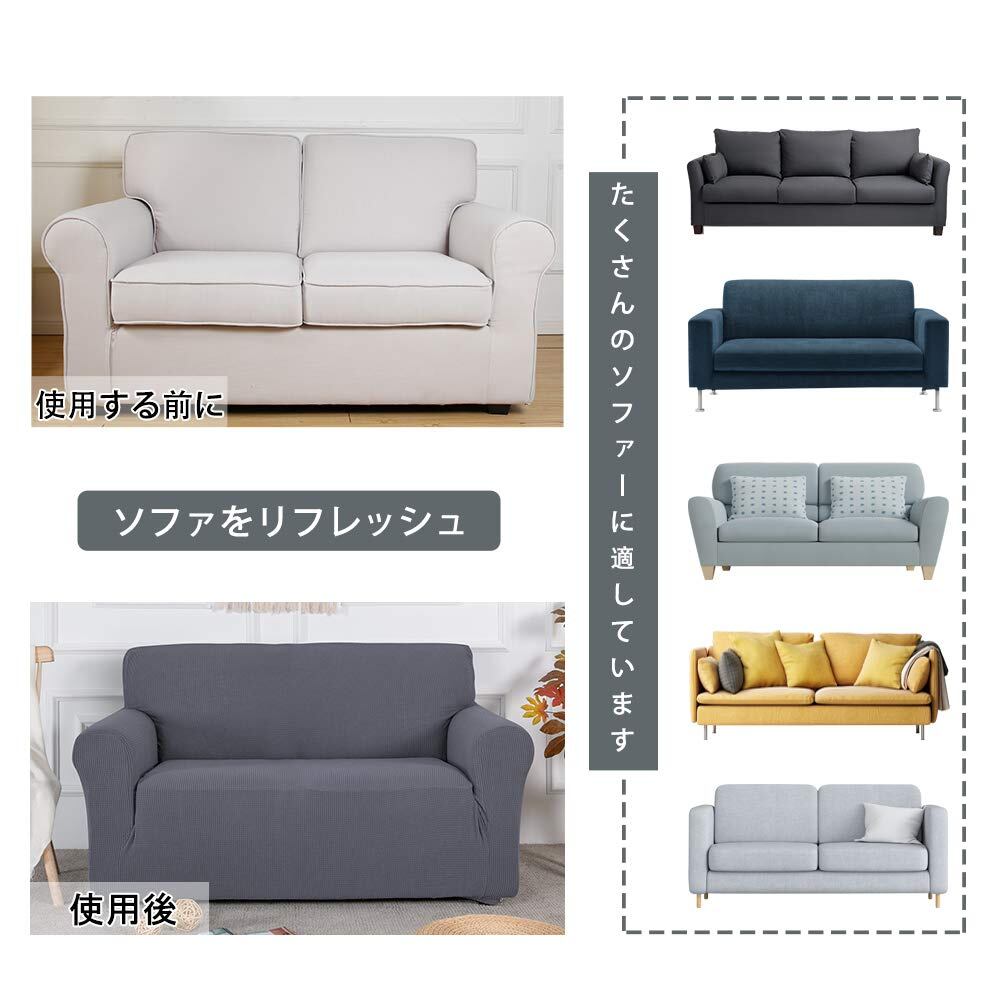 簡単着脱:ストレッチソファーカバーです。生地がグングン伸びて、簡単に着脱でき、肘付きソファーなど様々なソファーに適用です。滑り止め効果あります。女性一人でも簡単に取り付け可能です。