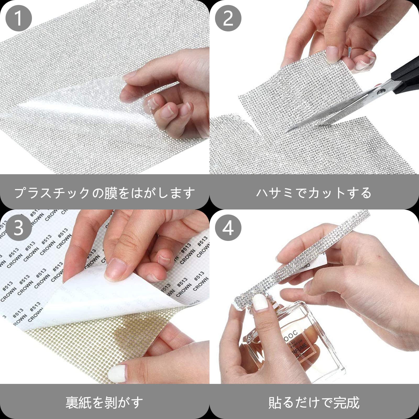 【品質素材・簡単に使用】ラインストーンシールは高温溶融技術を采用し、耐熱性強化、強い接着性、長時間使用しても簡単にはがれない、さまざまな物体の表面に適しています。 デコシールは、自分の望む形をハサミで必要サイズをカットして、様々な物体の上に、自分の好みの装飾をDIYすることができる。