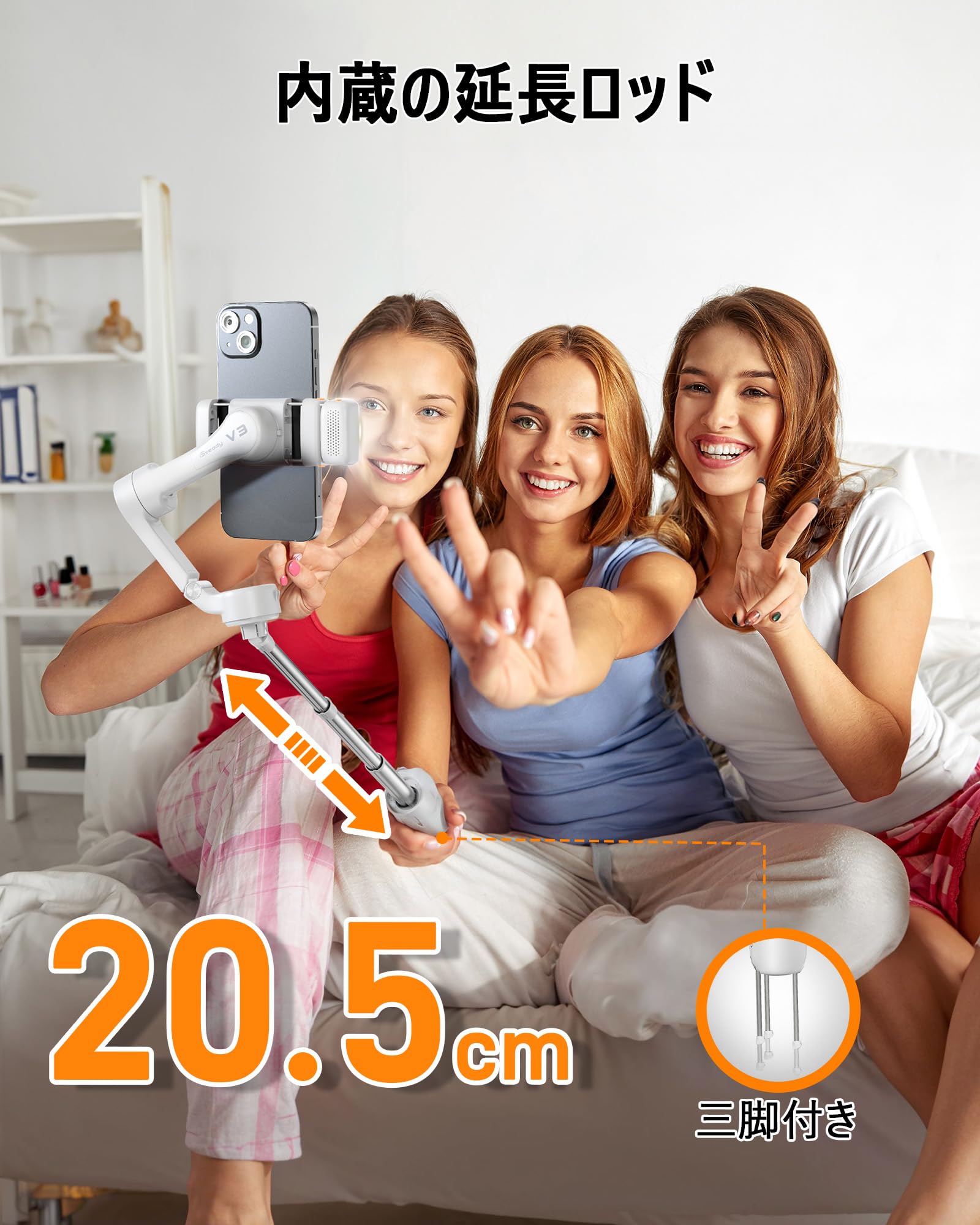 hohem V3 ジンバル 3軸スマホジンバル AI自動追跡 13時間駆動 ジェスチャー撮影 3階段調光ライト&美顔 リモコン付き 延長ロッド & 三脚内蔵 手ブレ補正 スタビライザー 折りたたみ式&軽量 Android&iPhone用ジンバル 日本語対応アプリ ホワイト
