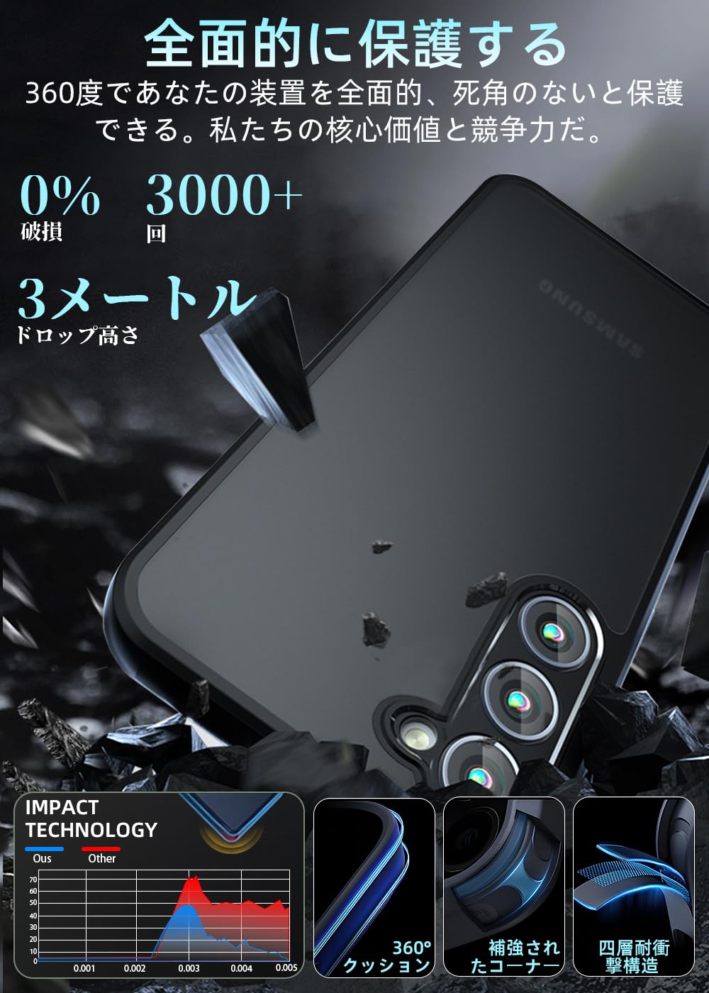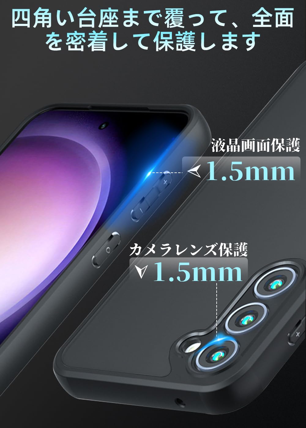 【対応機種】Galaxy S23 FE 用【超高耐衝撃性】角部分にAIRクッション搭載により、落下時の衝撃を瓦解・吸収する効果があり、いくら落としても布団に飛び込んだみたいな感触を与えます。背面は硬いPC素材で作られて側面はSGS認証されたの最高級TPU素材を採用して弾力性があり脱着しやすくて落下などの衝撃を分散・吸収できます。装着の際に本体を傷つける心配もありません。高い耐衝撃性を持て、携帯電話をしっかりと守ります。