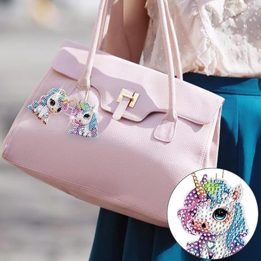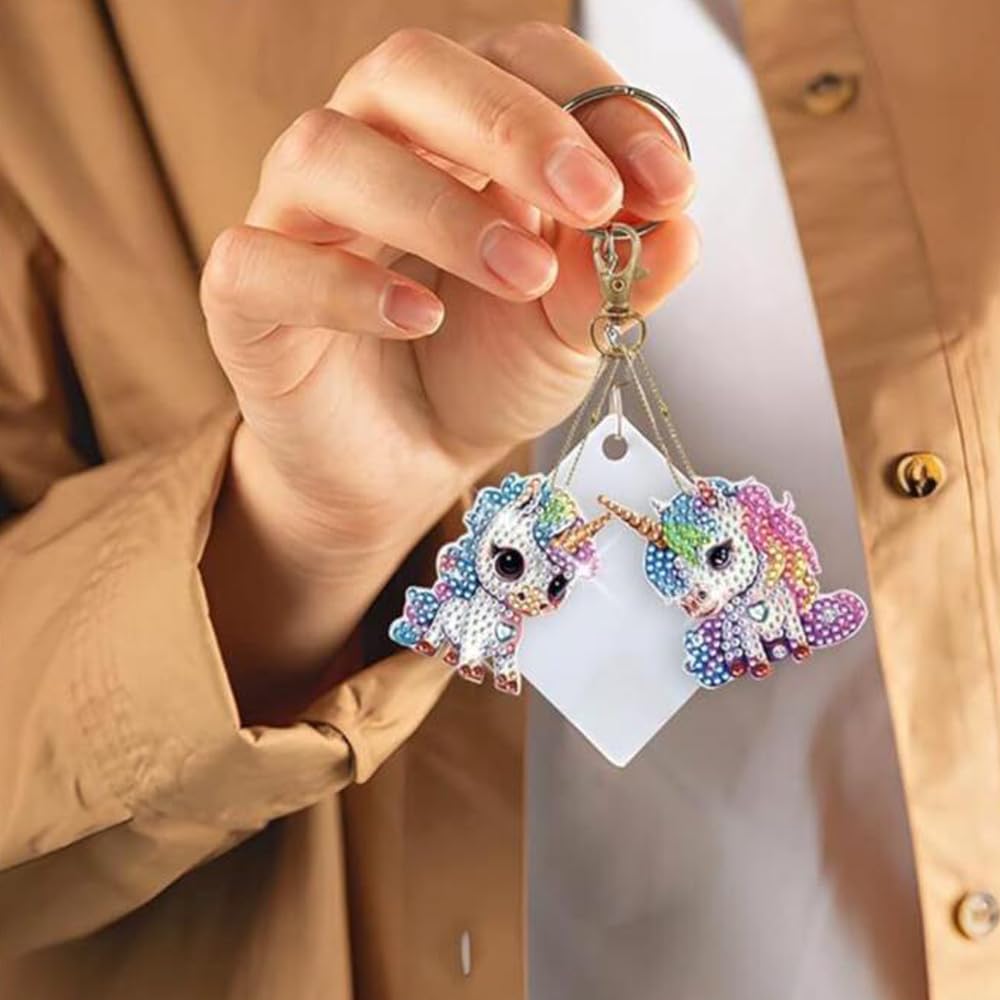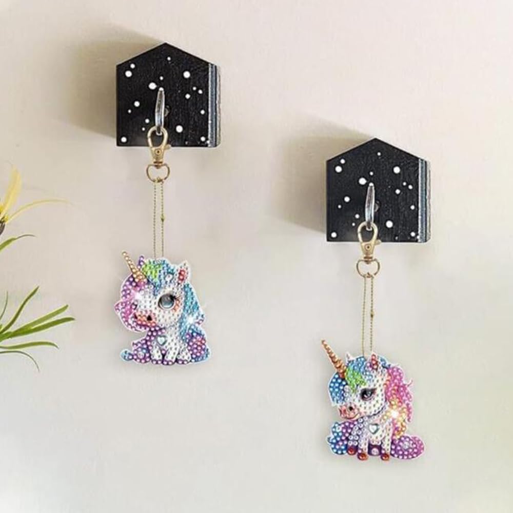 GOODCHI 曼荼羅 ダイヤモンドアート キーホルダー 両面全貼り付け ビーズアート 7点セット 塗装キット 可愛い キラキラ 人気 手作りDIY クラフト用品 (ユニコーン)