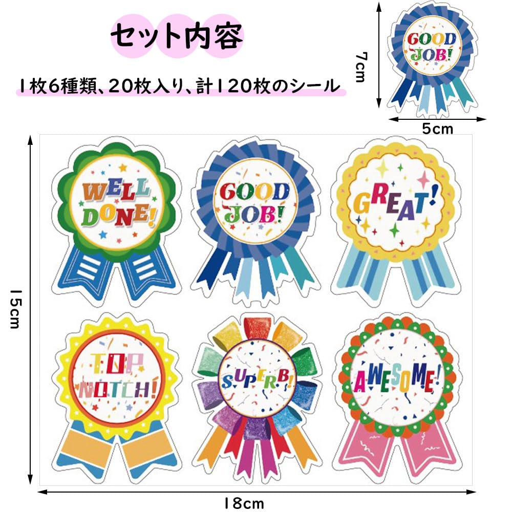 サムコス よくできましたシール ご褒美シール 6種120枚 可愛いシール 大きい ごほうび ロゼット シール 勲章シール ご褒美 ごほうびシール 卒園おめでとう シール