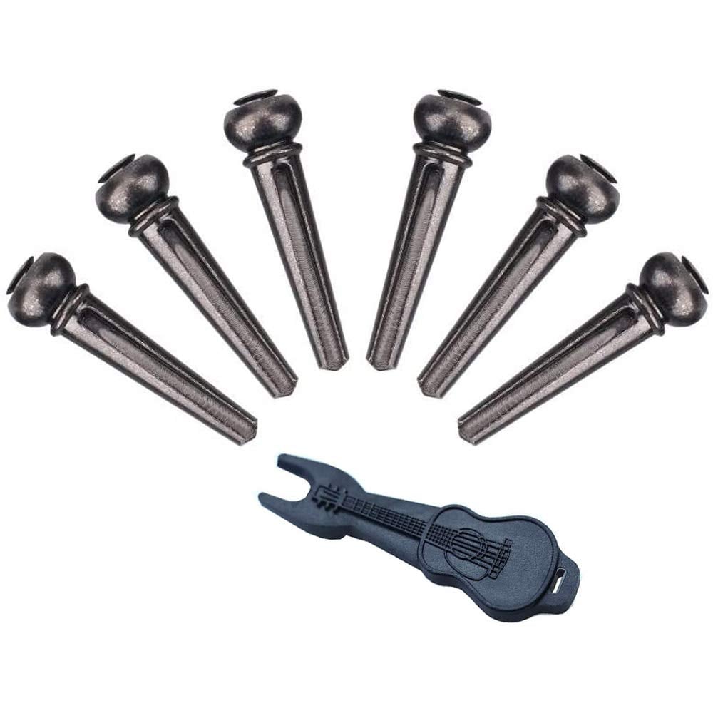 7本セット 真鍮ブリッジピン よく鳴る アコギ ギター 用 アコースティックギター 用 ブリッジピン エンドピン ピン抜き付き ブリッジピン アコギ ギター用 ピン抜き付き エンドピン 真鍮 ブラス (ブラック)
