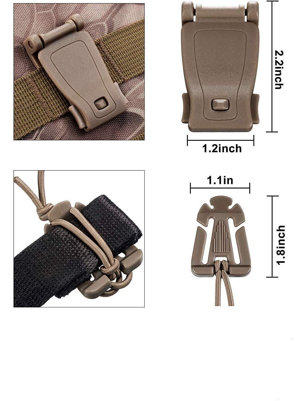 実用的な道具:これらのアタッチメントは使いやすいです、あなたはあなたのバッグを固定するために異なる形を使うことができます、キーホルダー、帽子やグローブ、コードなど小物類の保持やハイドレーションチューブの固定に便利です,飲み物管、懐中電灯、ラジオワイヤー、やかんおよびその他。
