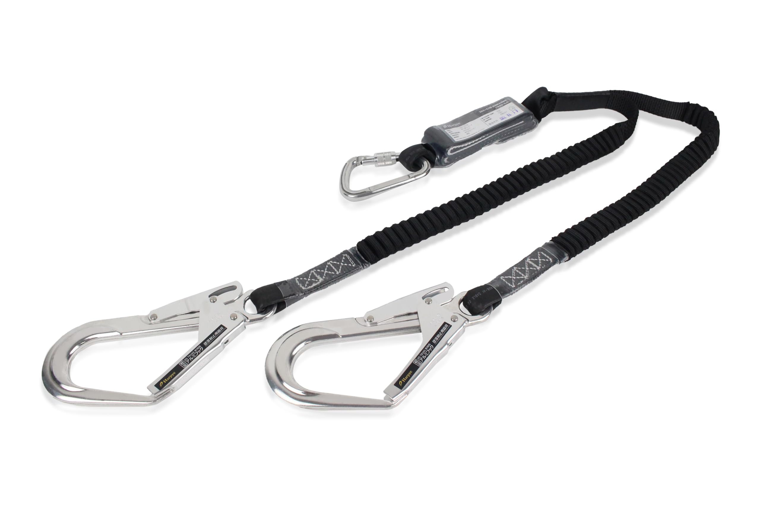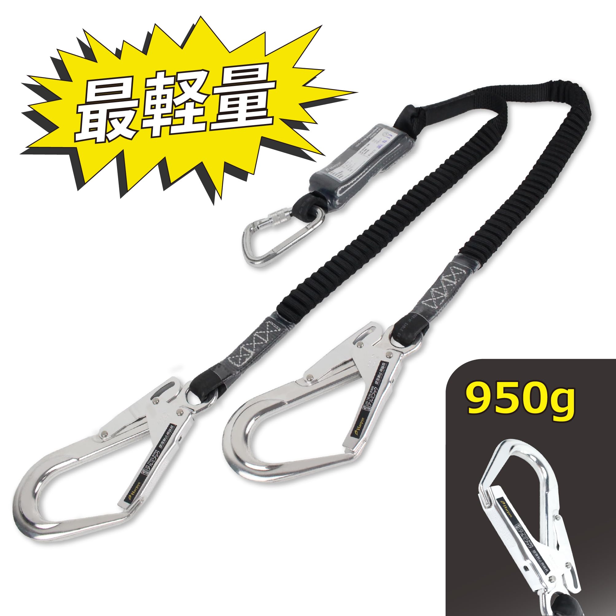 [新規格適合] フルハーネス型用 ダブルランヤード[2丁掛け] 伸縮式蛇腹 軽量アルミフック 第一種 墜落制止用器具 100KGまで適合 安全帯