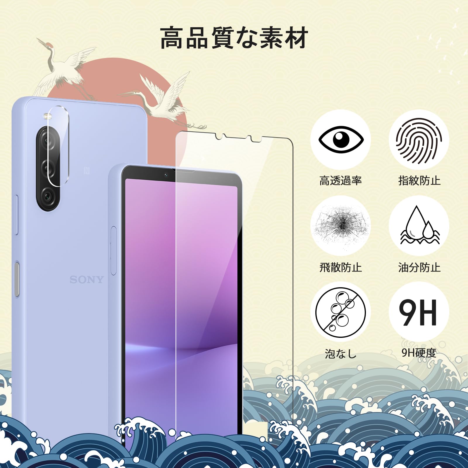 【日本旭硝子素材-9H硬度】Xperia 10 V 強化ガラス 保護フィルムは日本旭硝子素材を採用します。400℃の焼戻炉で4時間加熱し、二次強化し、硬度が9H硬度に達しています。 ポケットの中の鍵やコインなど、様々なものからスマートフォンを保護します。 防爆、耐スクラッチ性、落下防止。※ヒント:二次強化後の旭硝子は、靭性が高く、割れにくいです。ガラスの表面に防爆PET層を追加し、万が一、衝撃を受けて割れても飛散せず、ご自身の安全を守ります。