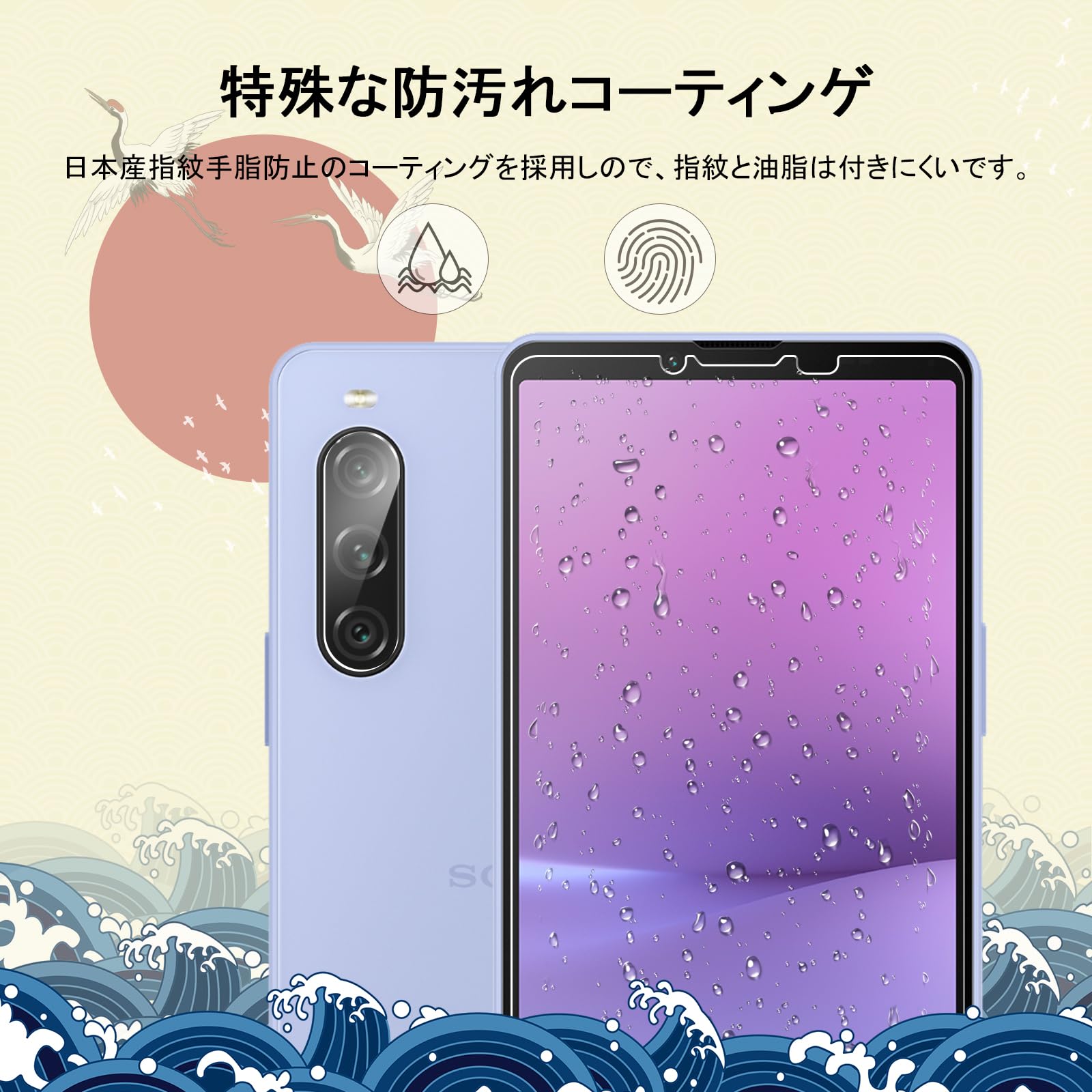 ガラスフィルム Xperia 10 V 用 2枚 + カメラフィルム 2枚【旭硝子素材製】ガイド枠付き 強化ガラス 液晶保護 気泡防止 高感度タッチ 指紋防止 防水撥油 飛散防止 耐衝撃 エクスペリア 10 V SOG11 SO-52D 対応