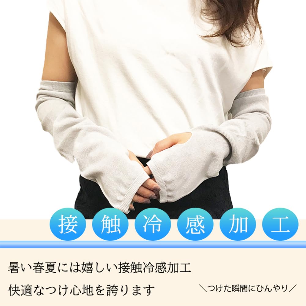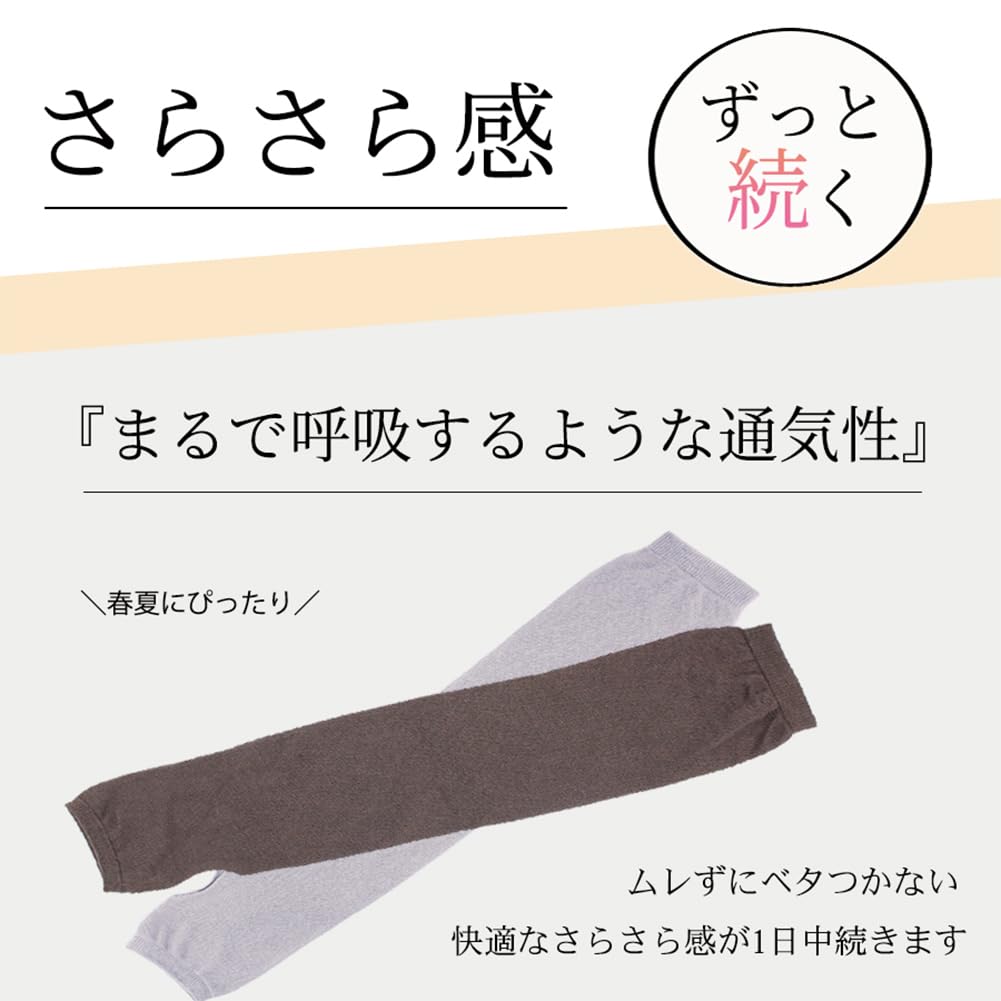 [meika online] 秋にもピッタリ 日本製 さらさらアームカバー 綿×麻 uvカット 接触冷感加工 レディース uv 冷感 涼しい ロング