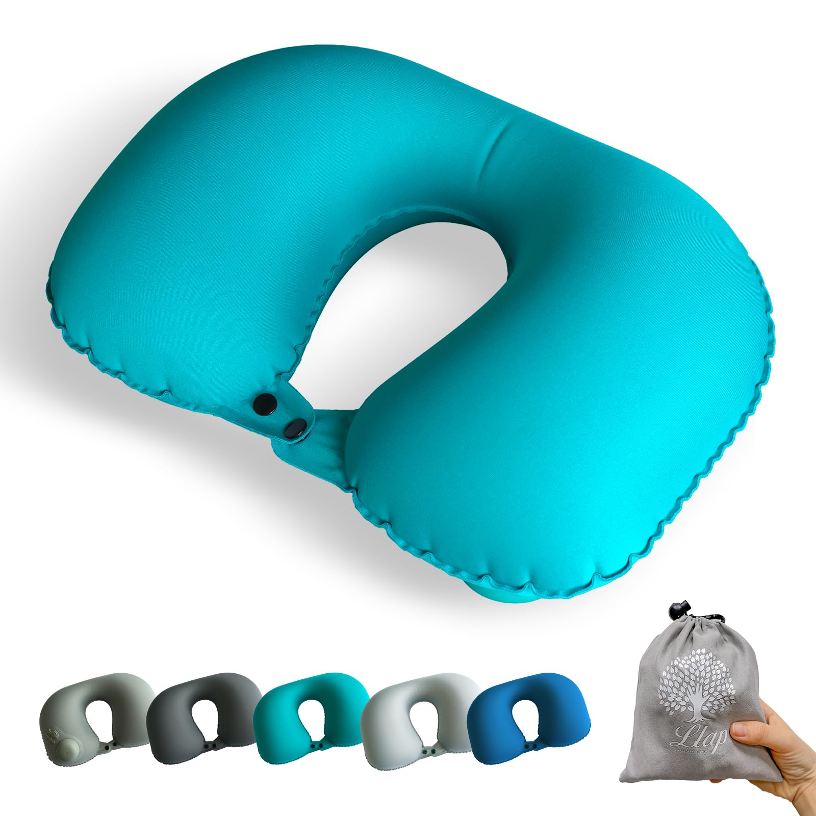 LLAP ネックピロー U型まくら ダブルバルブ 携帯枕 U型 首枕 エアーピロー くびまくら 手動プレス式膨らませる ねっくぴロー 旅行用 飛行機 トラベル 旅行枕 収納ポーチ付き (ブルー)