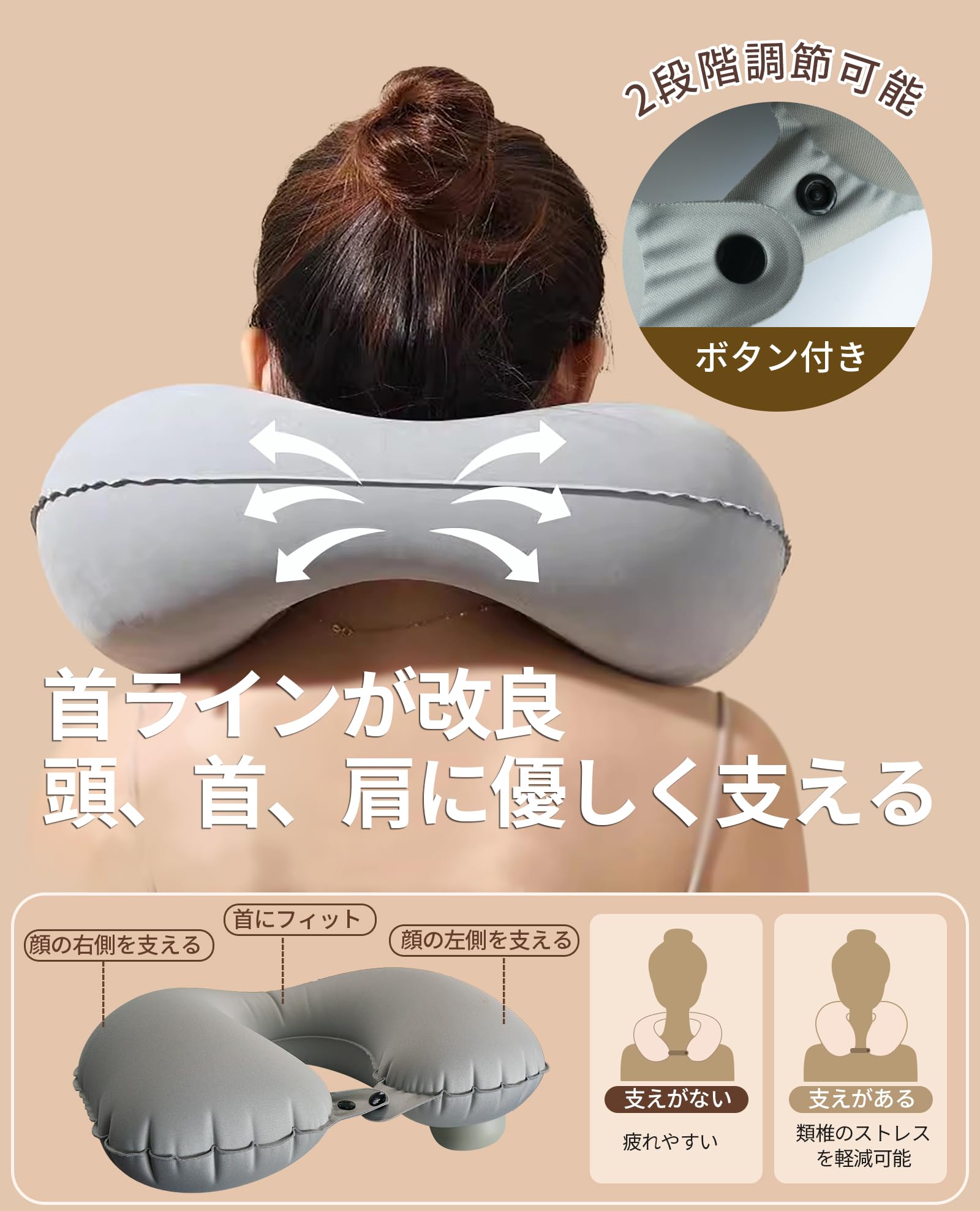 【サイズ調整可能】自由に空気を入れることができます。あなたに最もふさわしい快適感を調整しましょう。男女兼用です。
