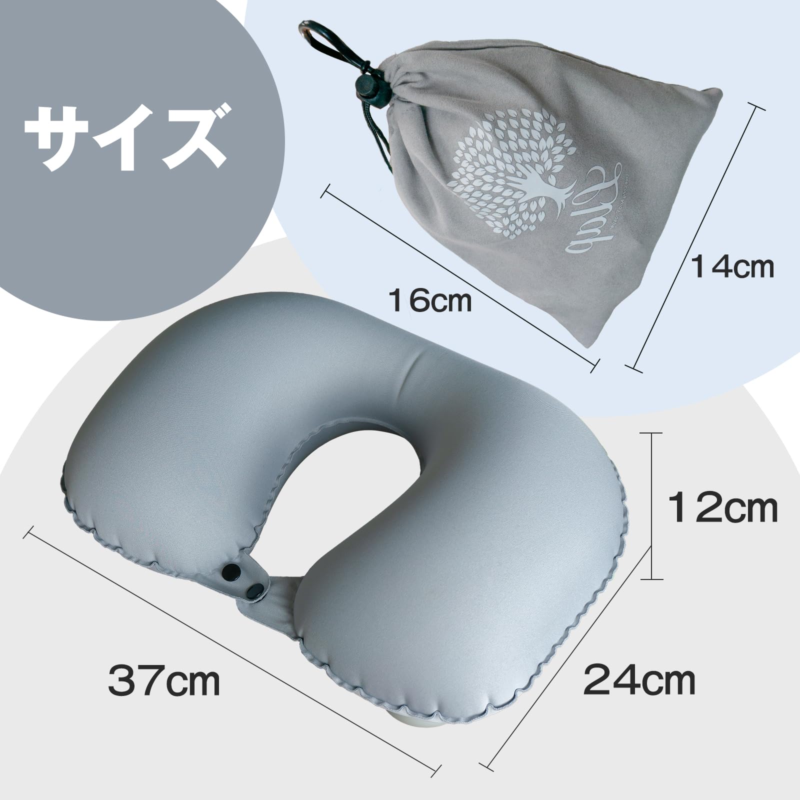 【在庫処分】LLAP ネックピロー U型まくら ダブルバルブ 携帯枕 U型 首枕 エアーピロー くびまくら 手動プレス式膨らませる ねっくぴロー 旅行用 飛行機 トラベル 旅行枕 収納ポーチ付き (ブルー) | GIGATERA