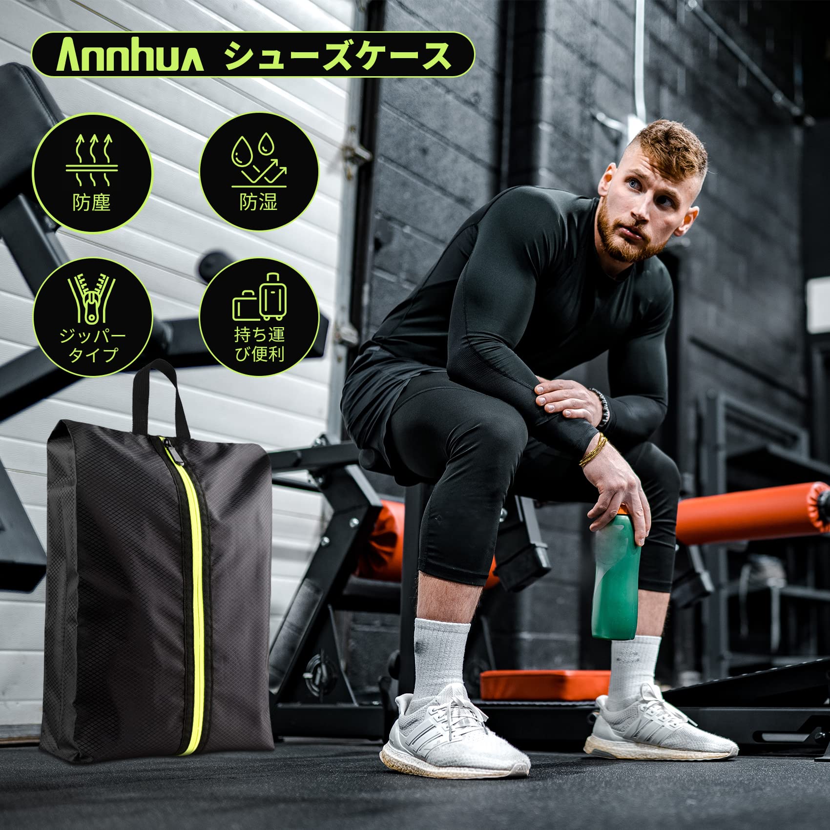 Annhua シューズケース シューズバッグ 防水 防塵 シューズ袋 シューズ入れ 軽量 靴袋 アウトドア スポーツ スニーカーバッグ バスケシューズケース 持ち運び便利 学校 上履き入れ 出張 旅行用 シューズ収納 ブラック