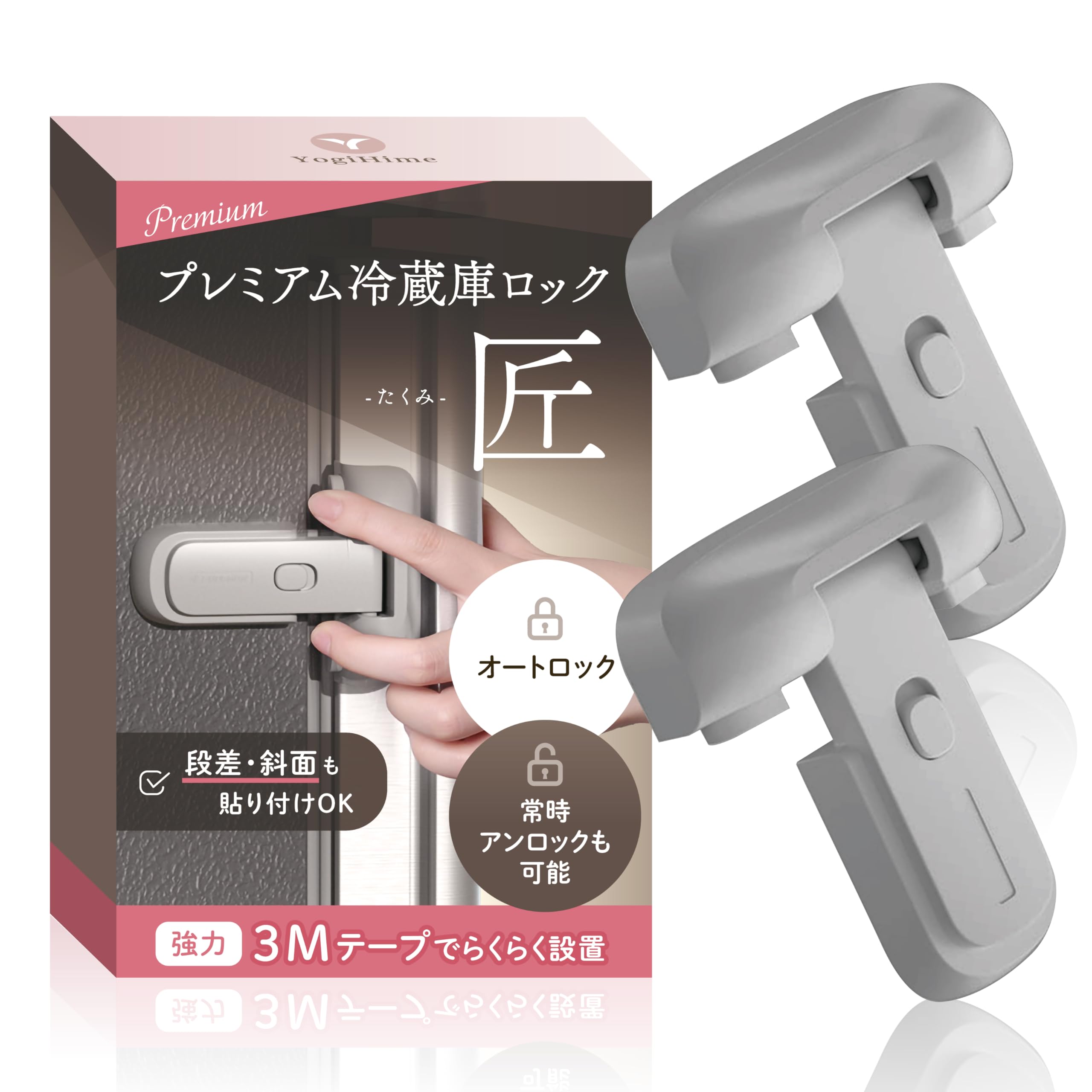 【在庫処分】プレミアム 冷蔵庫ロック 匠「常時オート施錠・常時ノーマルオープン切り替え可能」 「段差・斜面設置可能 」 日本のチャイルドロック専門店 (グレ−2)