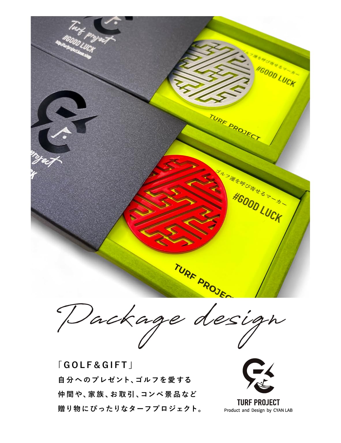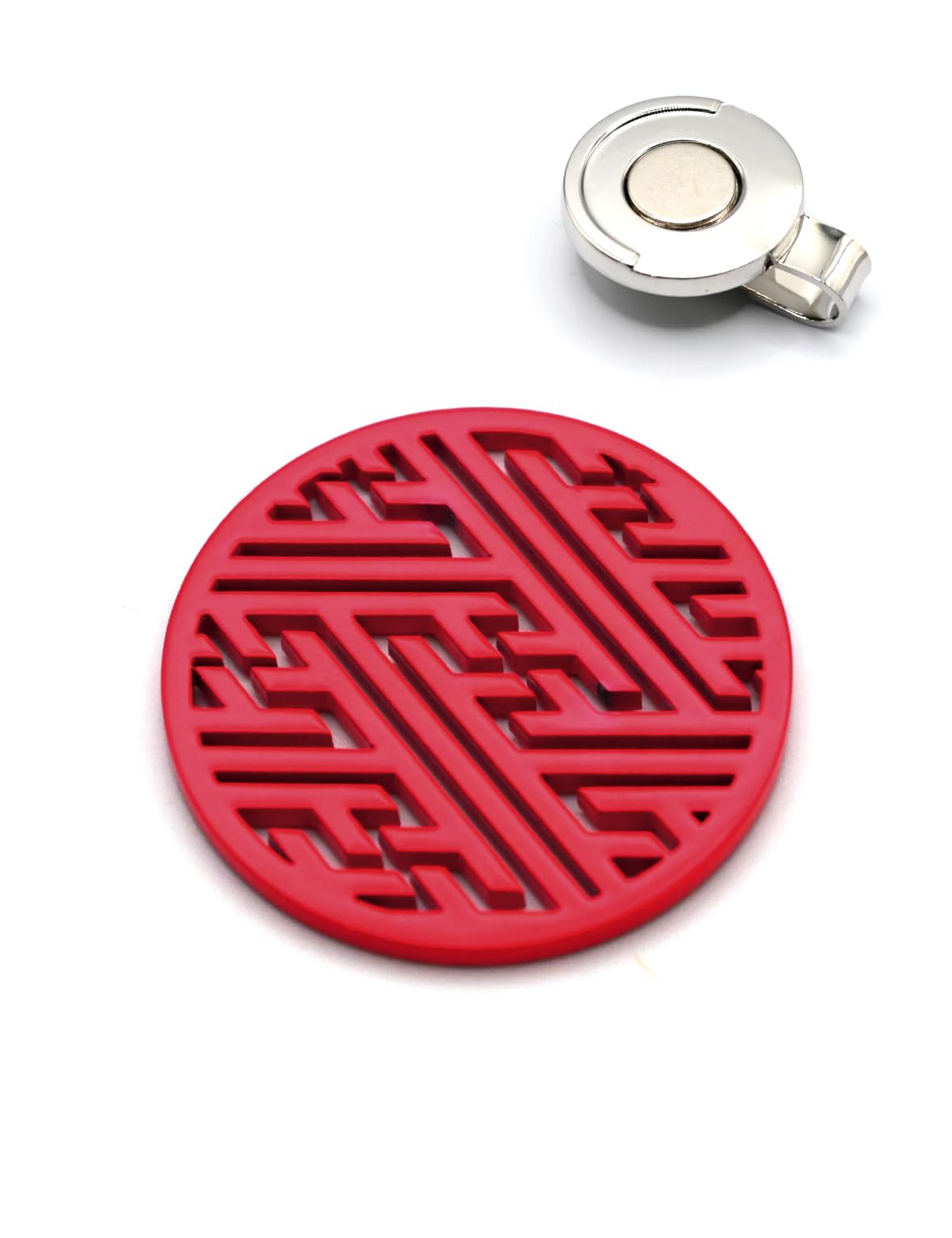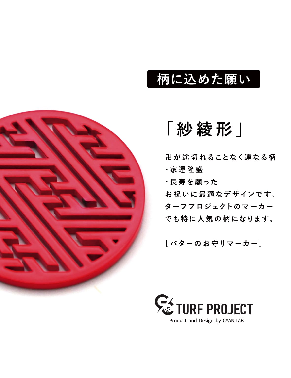 [#GOOD LUCKラック]運を呼び寄せるゴルフマーカー 紗綾形モデル #集中力UP #マグネットクリップ付き #ギフトにも最適 #ステンレス40㎜ ターフプロジェクト