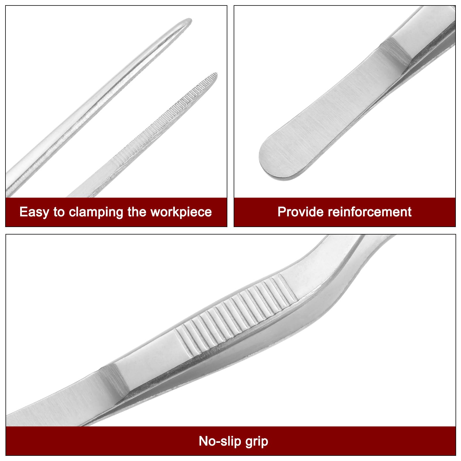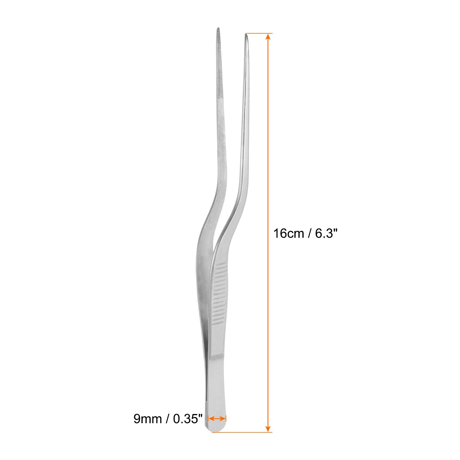 uxcell オフセットピンセットトング 16 cm 304ステンレス鋼 キッチン調理用 精密曲面ピンセット ガーデニング装飾用 メッキ