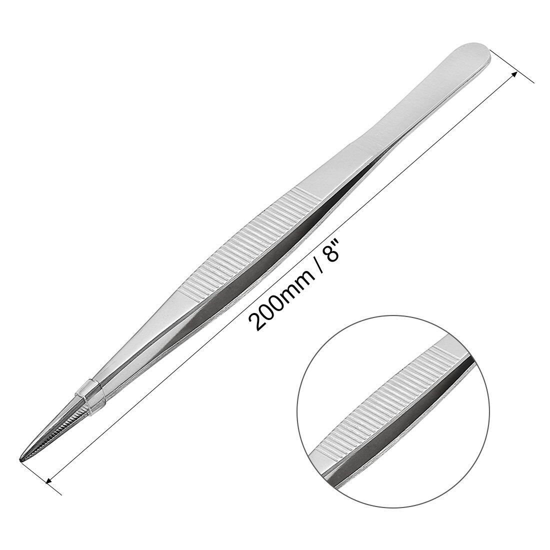 uxcell ステンレス鋼ストレート先の尖ったピンセット 鋸歯状の先端デイリーガーデンツール付き ピンセット長さ200mm