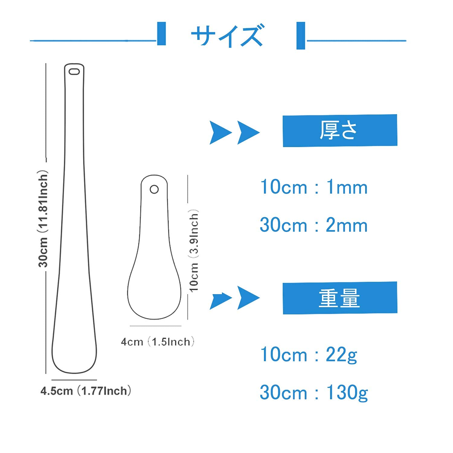 サイズ&重量:(約)10cm・30cm、22g・130g