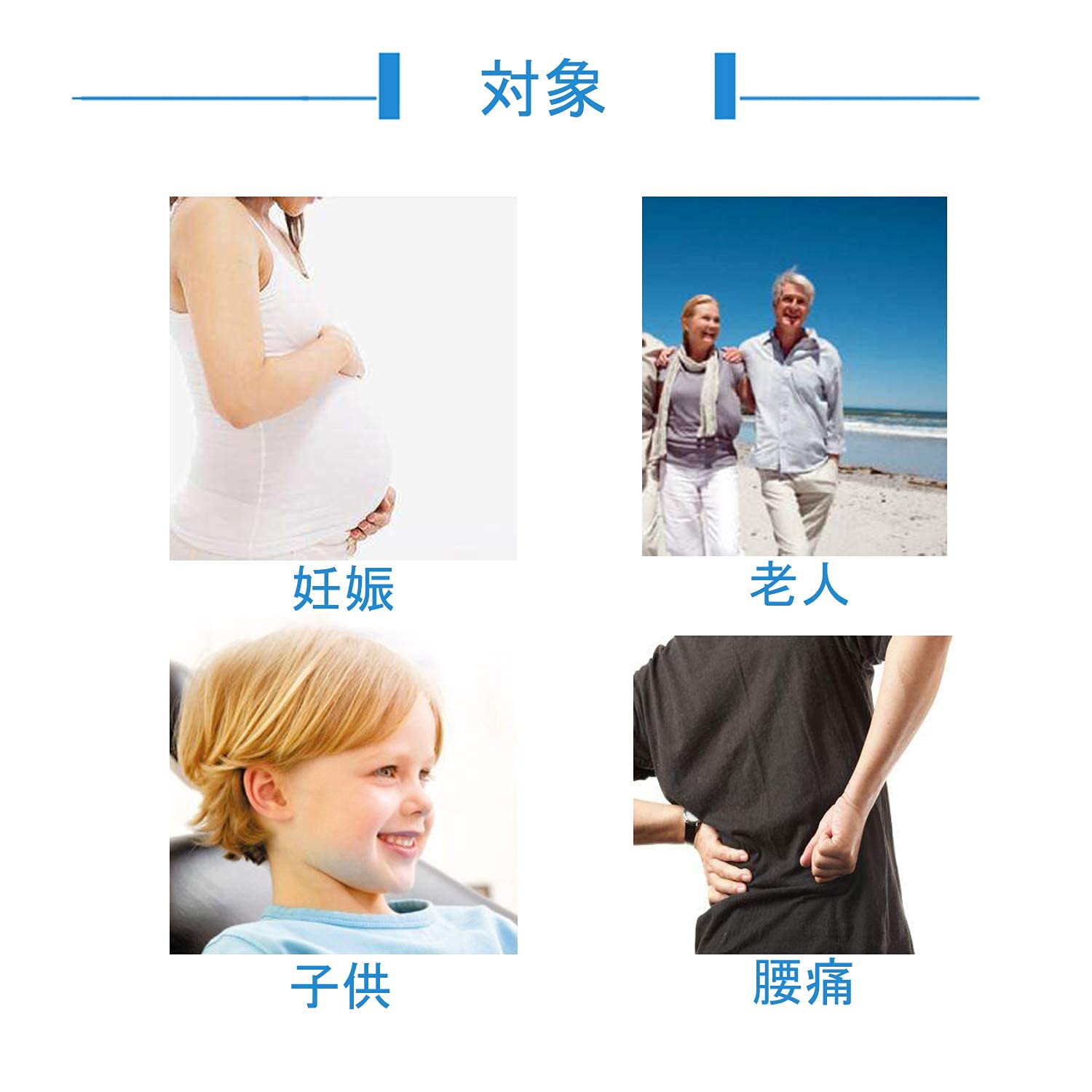 対象:男女兼用。妊娠中の方、お年寄り、子供などにも適用です。