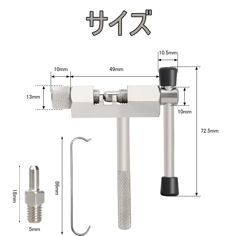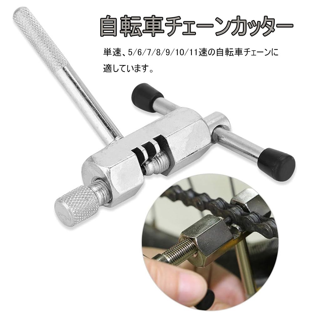 自転車 チェーンカッター 5点セット 単速 5-11速に対応 炭素鋼製 バイク チェーンカッター チェーンフック付き スペアピン バイク 修理工具