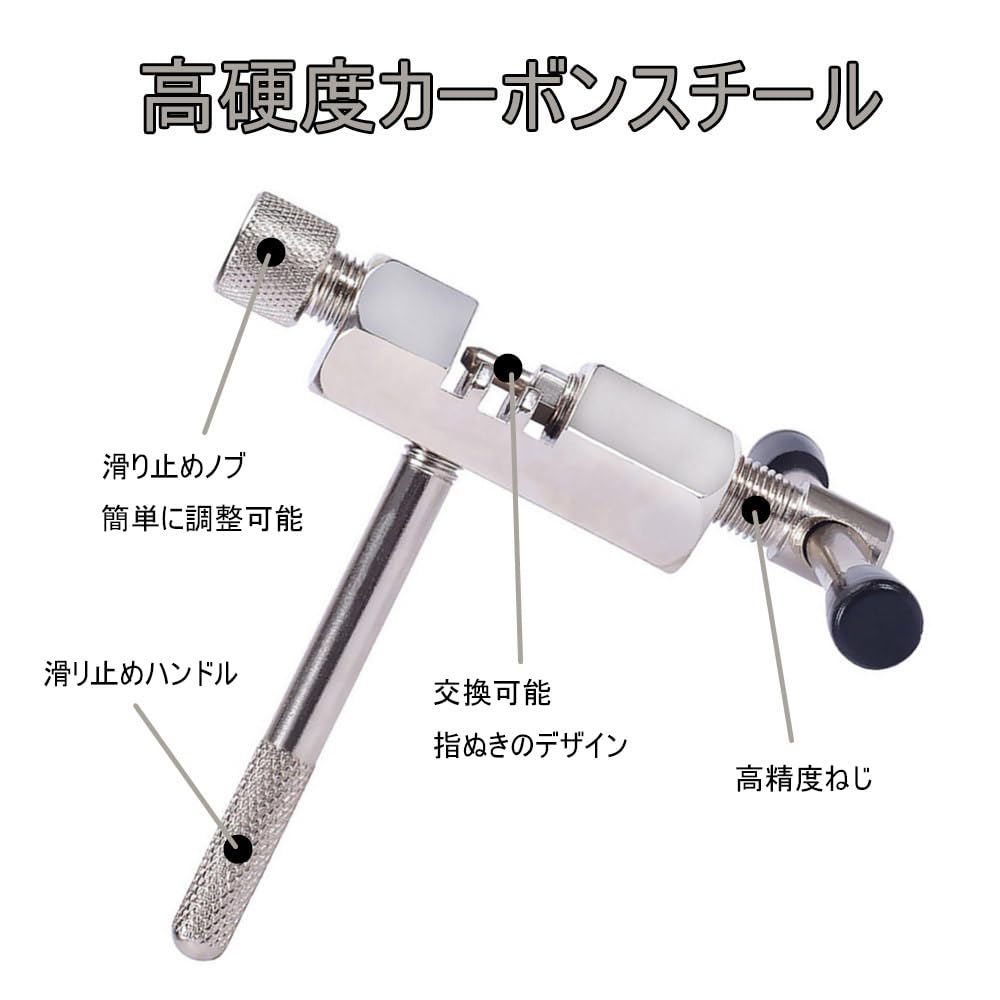 【交換可能ピン】チェーンカッターは、シンブル交換可能な設計で、チェーンスプリッタを長期的に使用するための予備ピンが付いています。