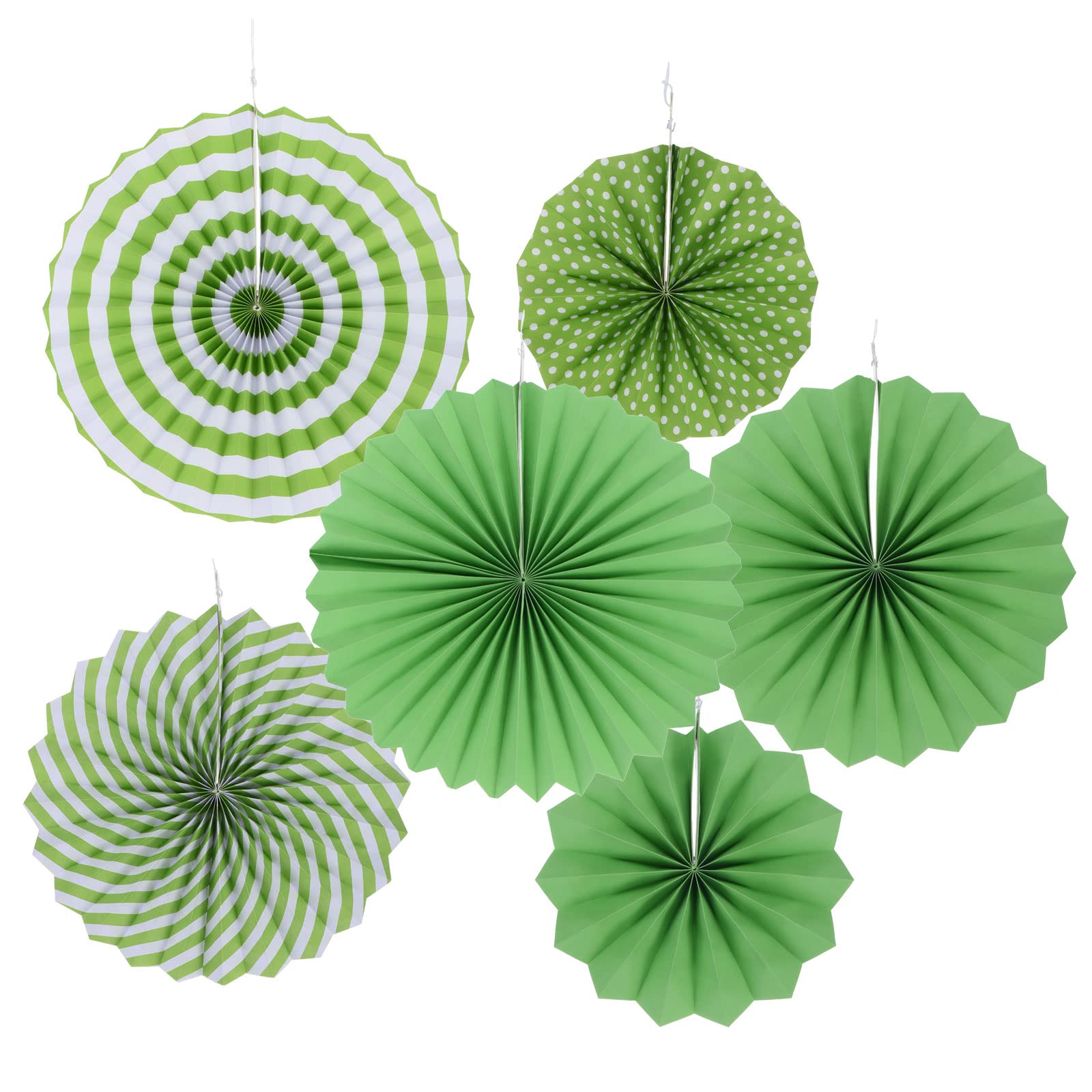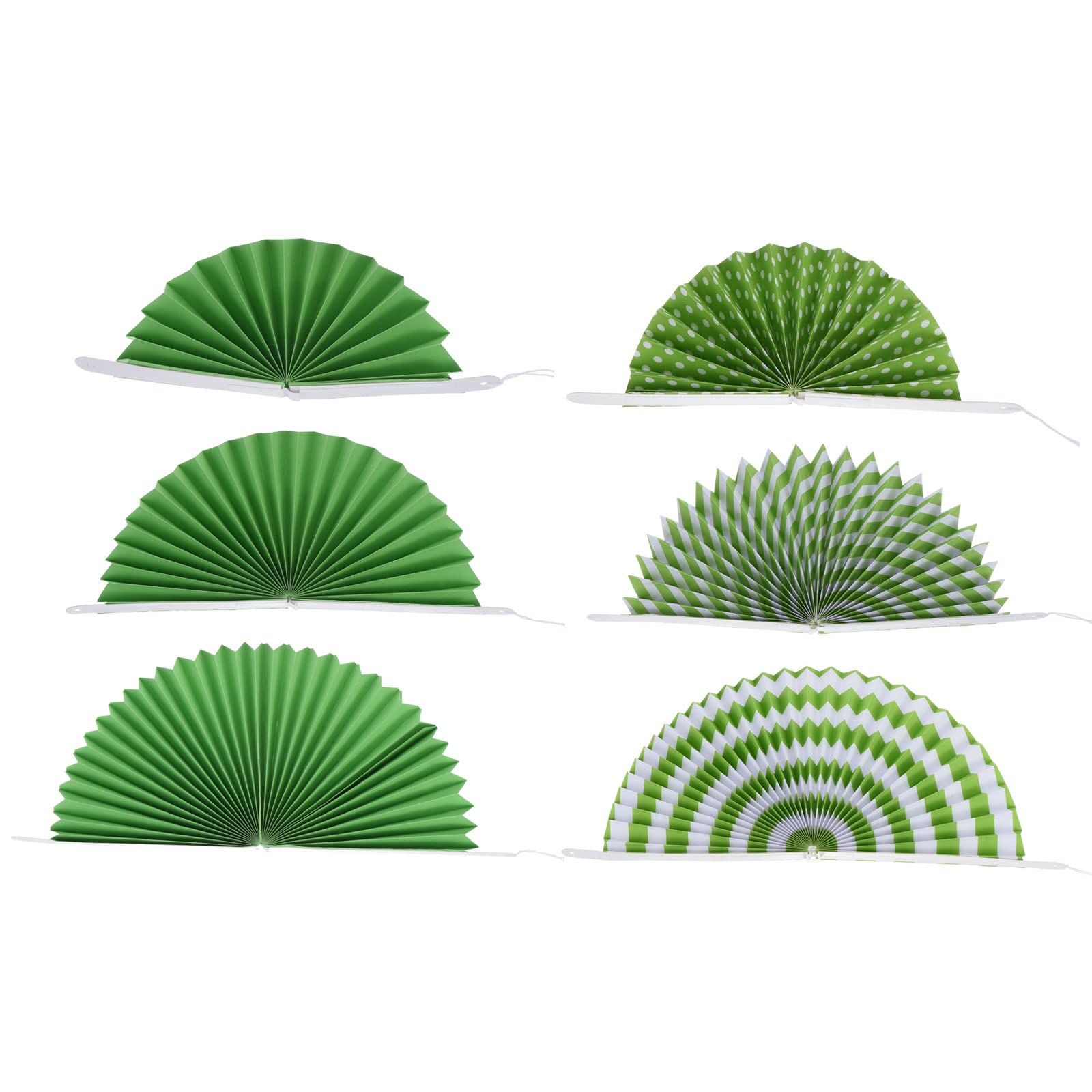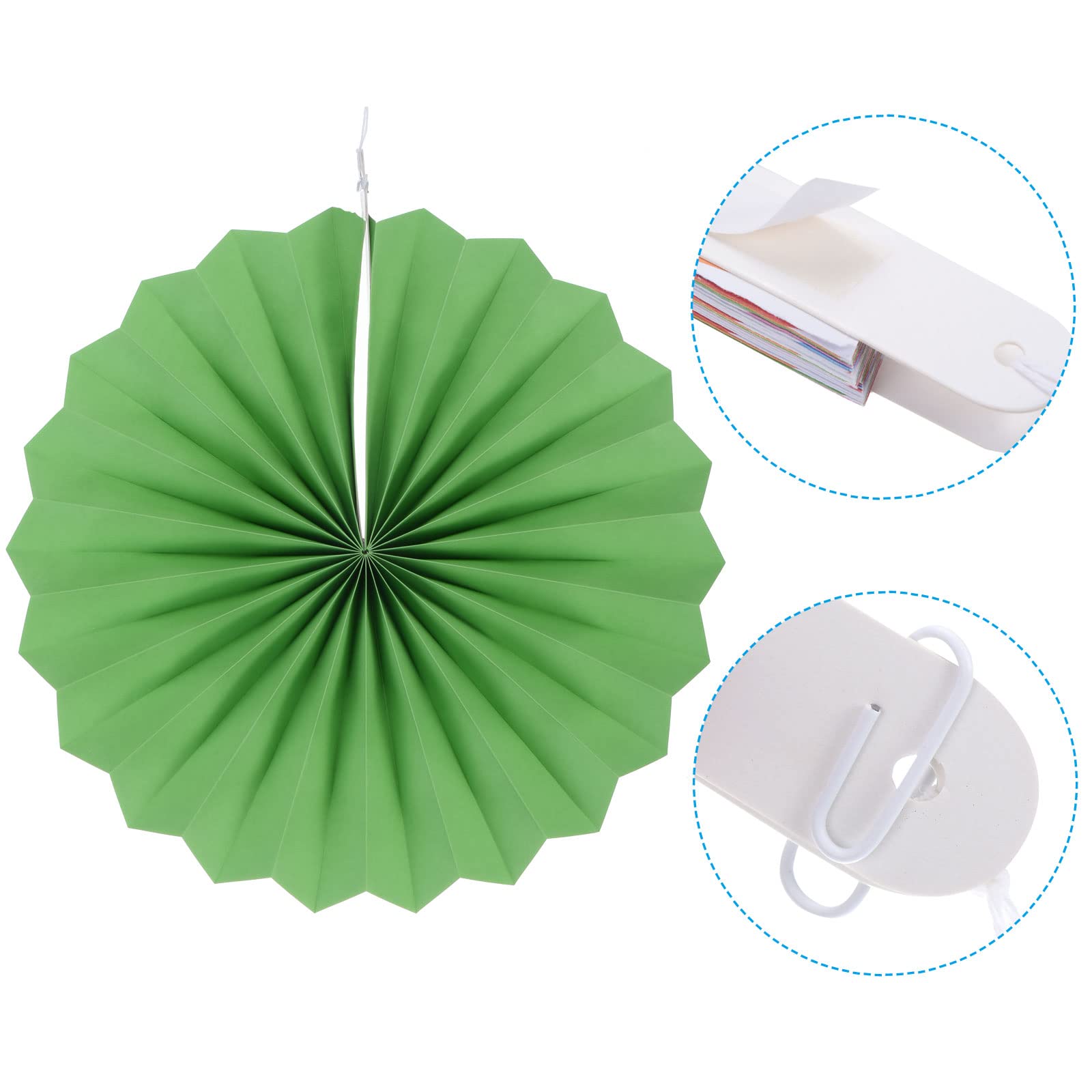 カラー: 緑; 直径: 20 cm、30 cm、40 cm; パッキングリスト: 1セット(6個) x ピン付きペーパーファン (各サイズ2個)。