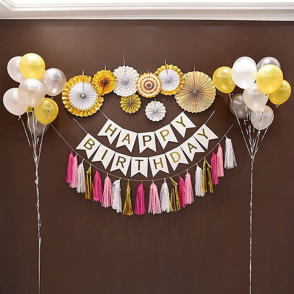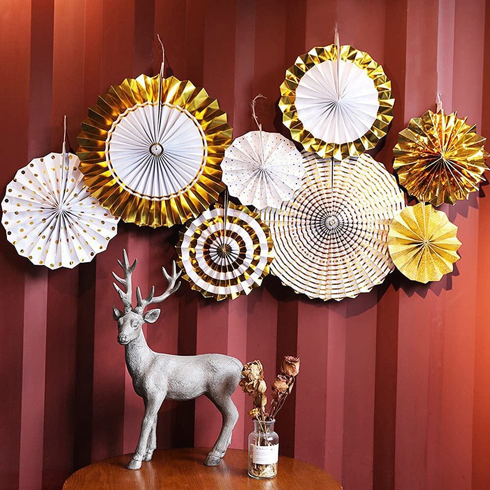 【新着】 ペーパーファン 8点セット ゴールド 誕生日 飾り付け セット パーティー デコレーション バースデー/ひな祭り/こどもの日/お正月/結婚式など お祝い 装飾 飾り 男の子 女の子 | GIGATERA