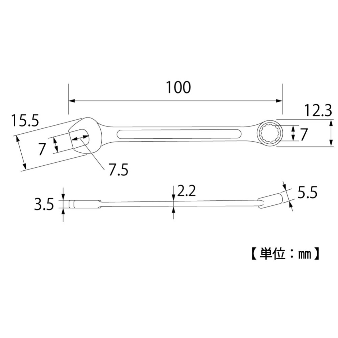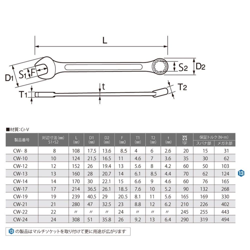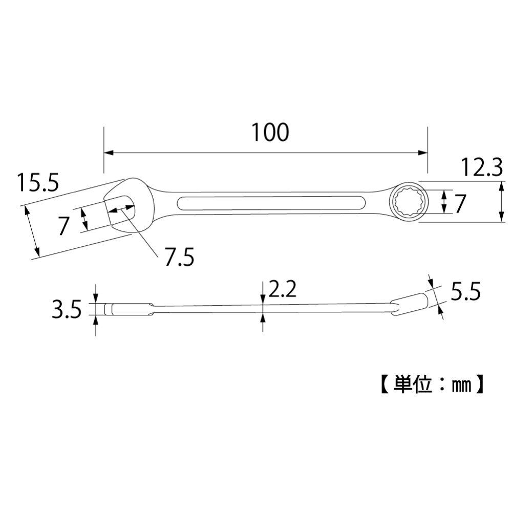 トップ (TOP) コンビネーションレンチ 対辺7㎜ 12角 サーフェイス 鍛造 国産 メガネ部15° CW-7