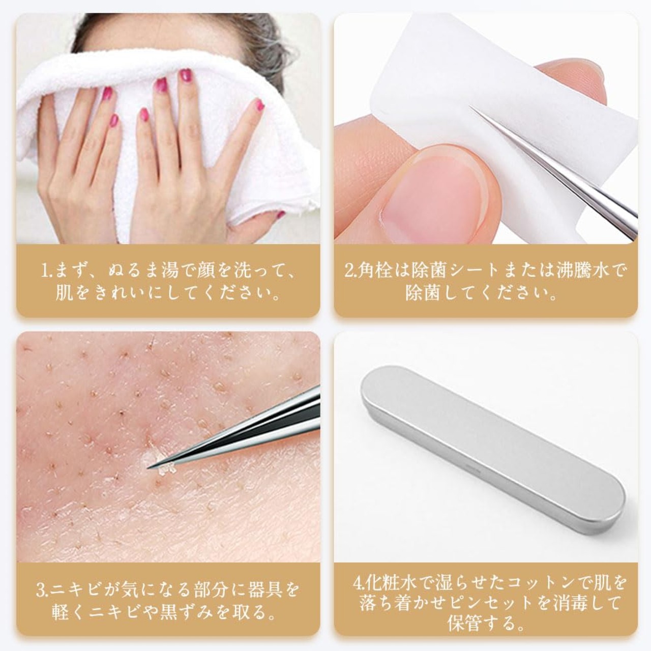 【超微細なプロの美容ツール】標準的なクリーニング--極細黒ずみ除去ツールまっすぐな口。大面積の清掃--極細黒ずみ除去ツール斜めの口。ディープクリーニング--極細黒ずみ除去ツール曲がった口。