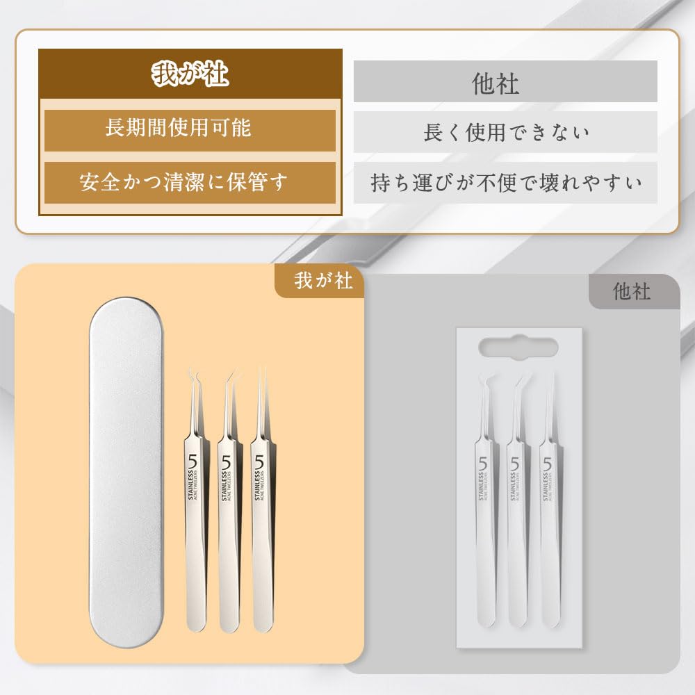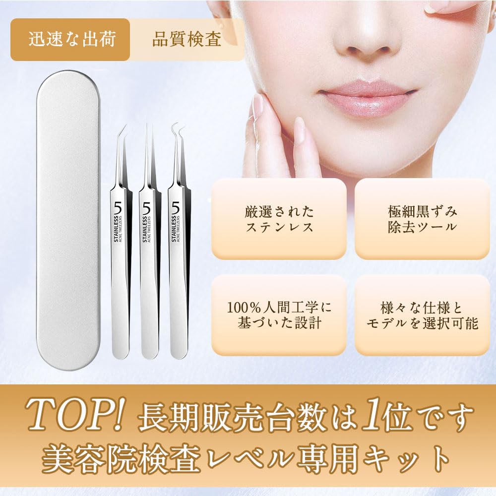サムコス 3本セット 精密ピンセット 角栓取り 先端は幅0.1mm 角栓ピンセット 毛抜き 極細ピンセット ニキビ取り 黒ずみ取り 毛穴ケア専用 精密な作業が可能 角栓取り ピンセット 収納ケース付