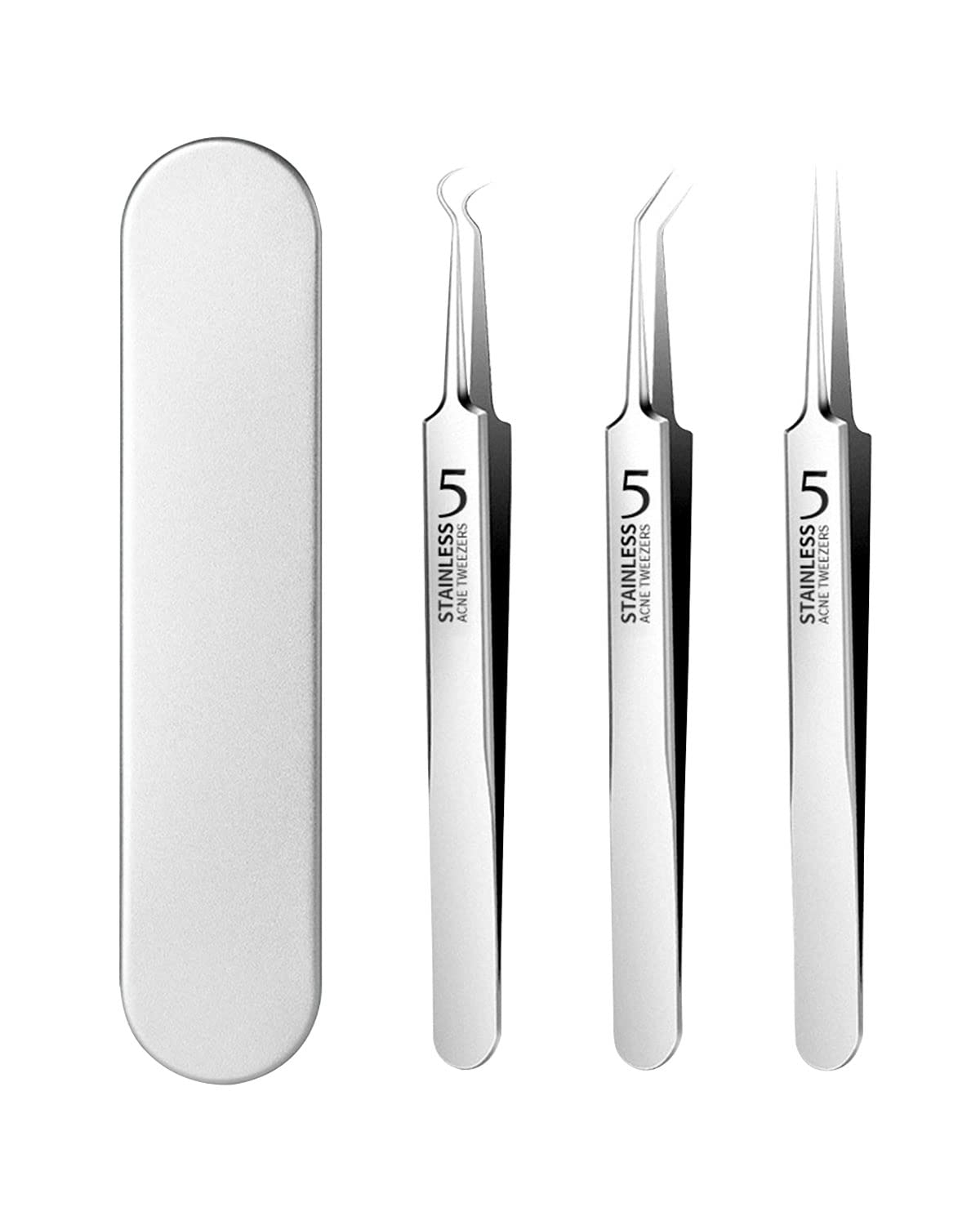 【人気】サムコス 3本セット 精密ピンセット 角栓取り 先端は幅0.1mm 角栓ピンセット 毛抜き 極細ピンセット ニキビ取り 黒ずみ取り 毛穴ケア専用 精密な作業が可能 角栓取り ピンセット 収納ケース付