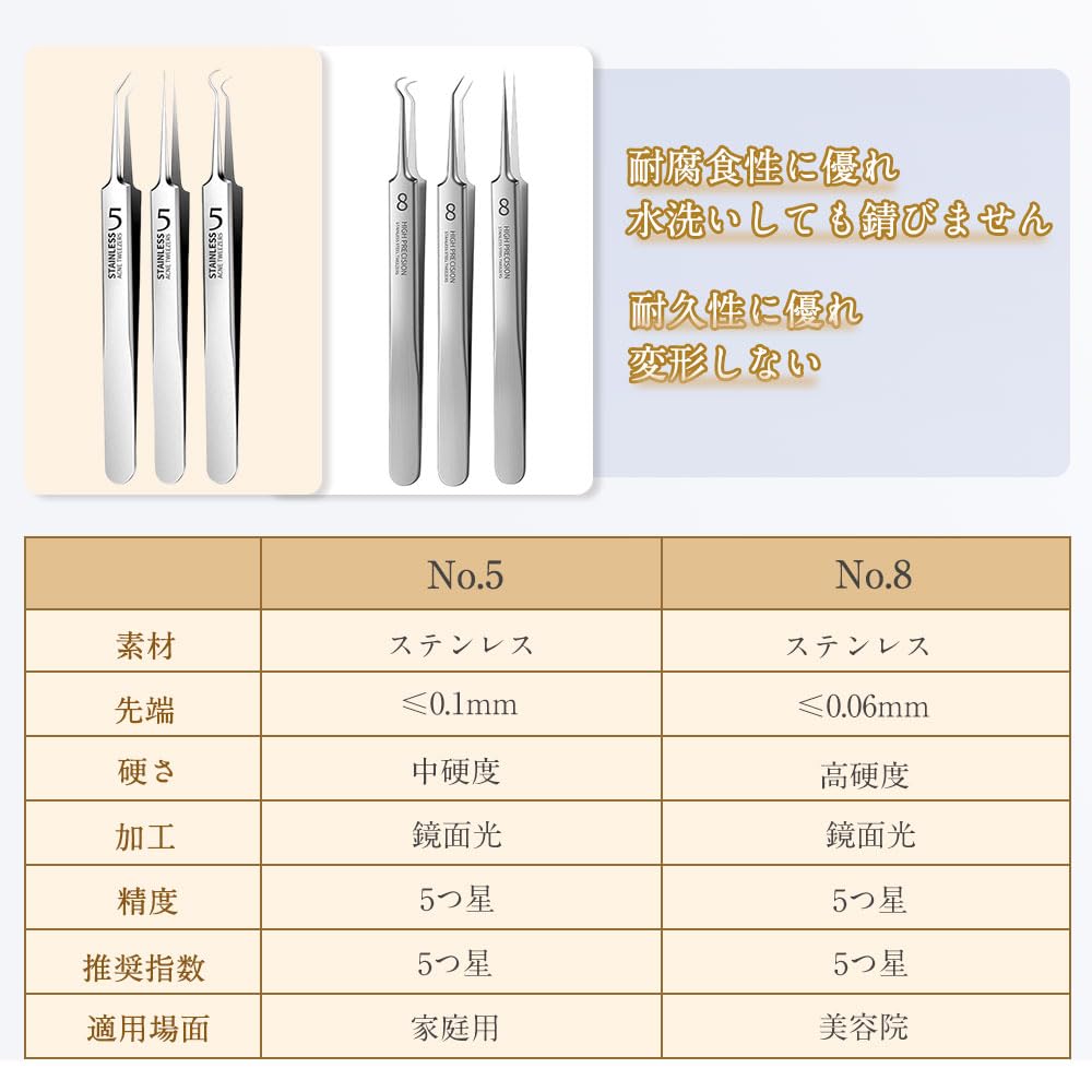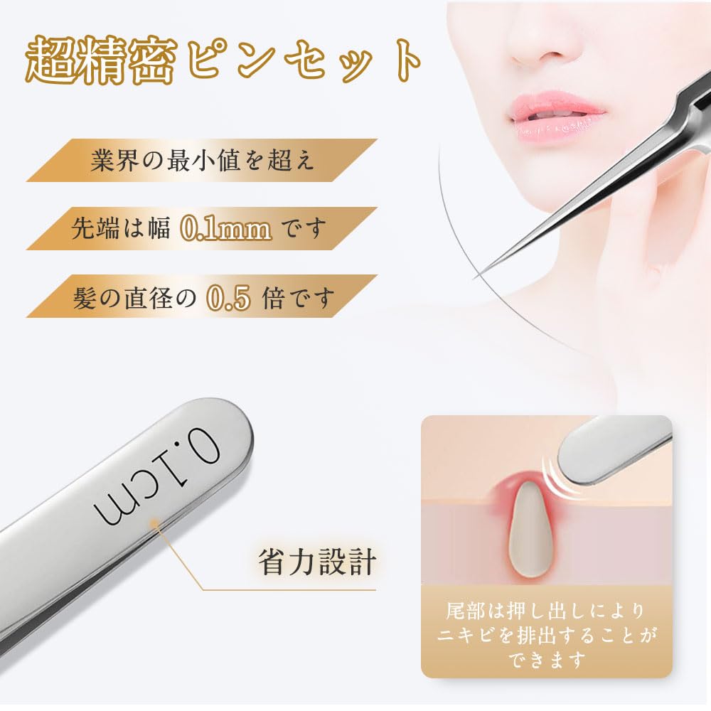 【超極細の先端】精密なピンセットは、業界の最小値を超え、先端は幅0.1mmです。これは髪の直径の0.5倍です。高精度、超精密ピンセット、清潔で滑らかな顔を保つのに役立ちます。