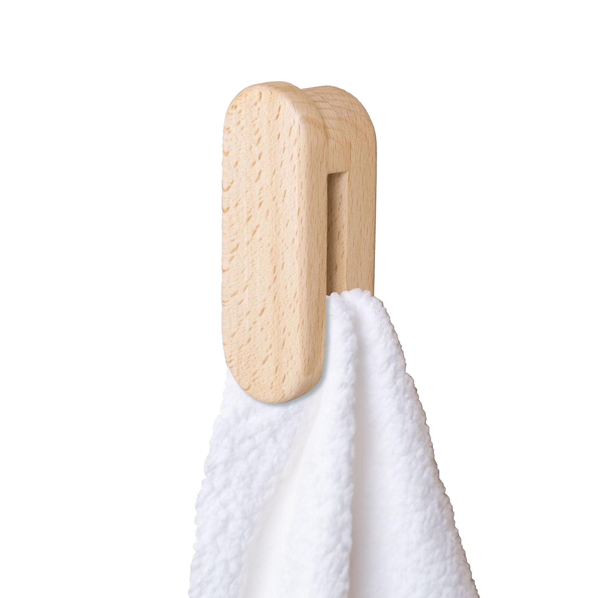 木製 丸い タオル掛け 天然木 北欧風 粘着シートタイプ タオルハンガー タオルバー 両面テープ付き (1個 ブナ)