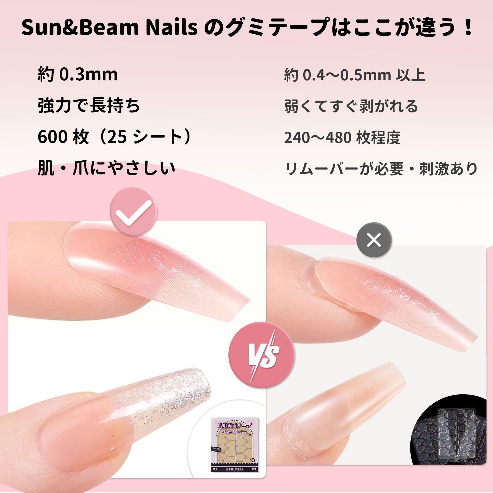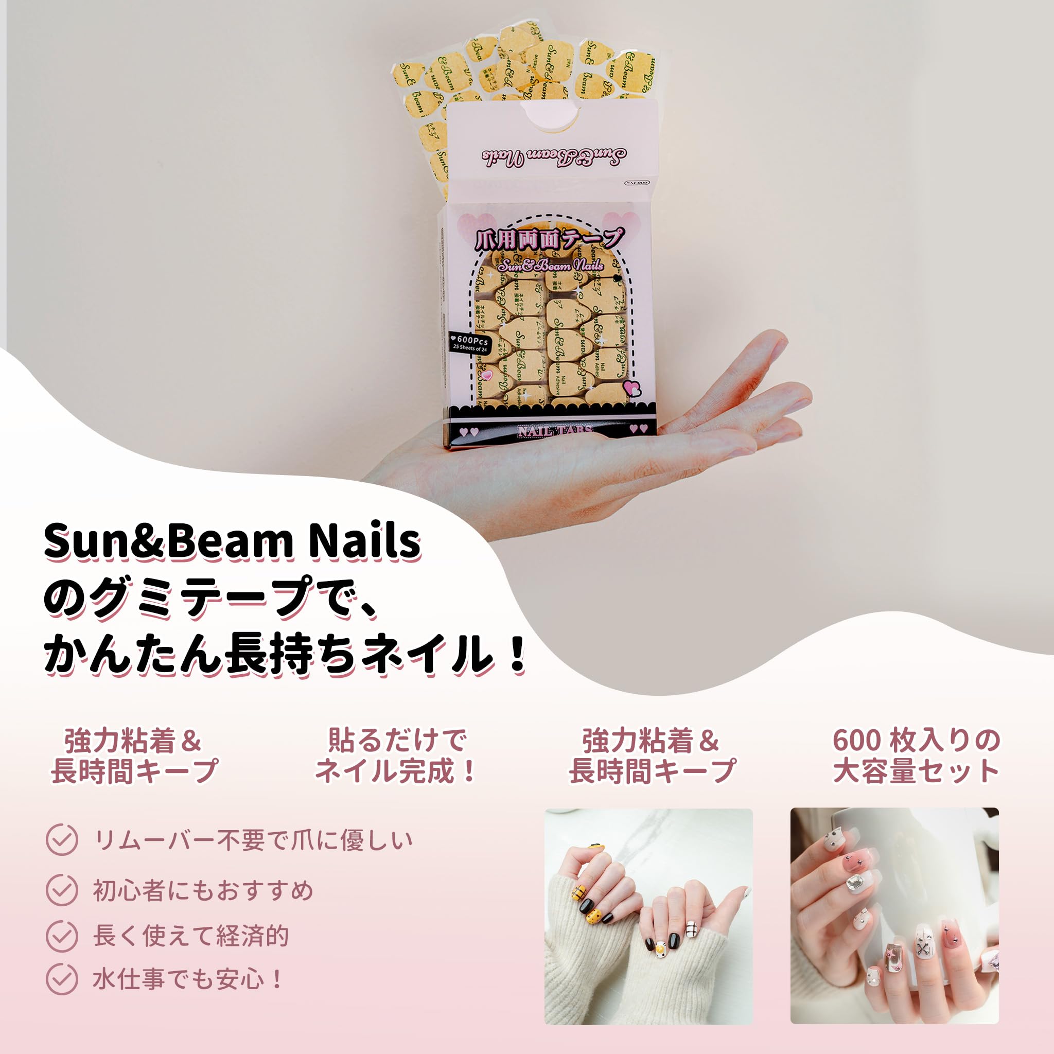 【特価在庫】Sun&Beam Nails ネイルチップ 付け爪 つけ爪 両面テープ ネイル つけづめ 爪用 接着剤 テープ グルー 0.3mm 極薄 超 強力 透明 防水 (25シート/600枚) | GIGATERA