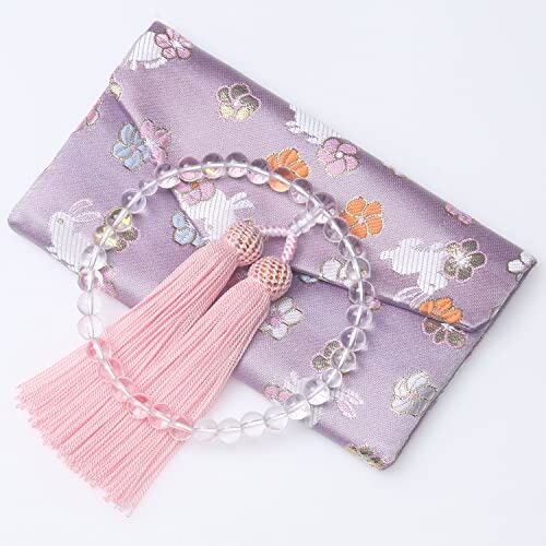 LEOBEE 女性用数珠 本水晶 マグネット式数珠袋付き 念珠 じゅず 葬式 葬儀 法事 念誦 全ての宗派で使用頂け 落ち着いたピンク プレゼント…