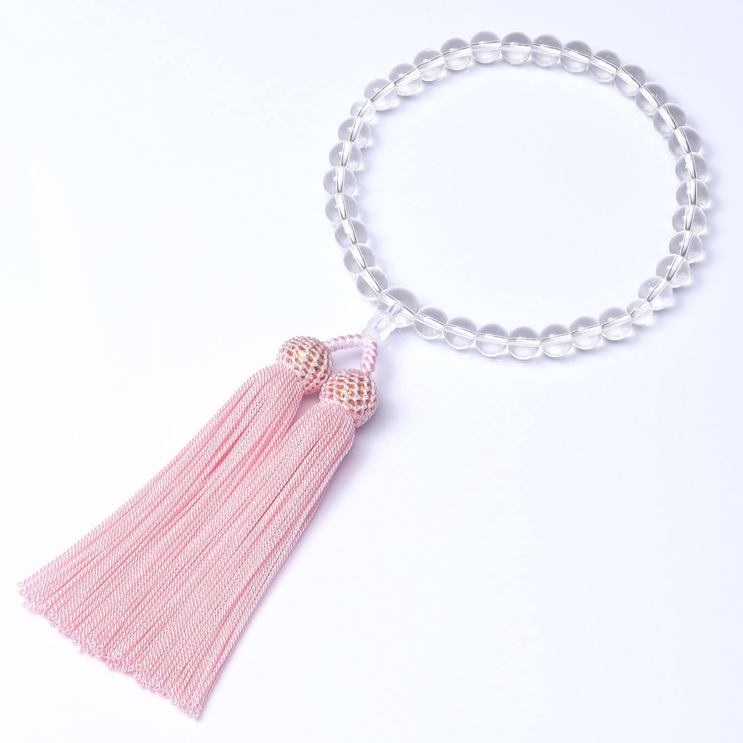 【エレガントな数珠】エレガントな水晶を使用しており、とても女性らしくて綺麗な念珠です。お値段から見えない高級感があり、上品な雰囲気を演出してくれます。