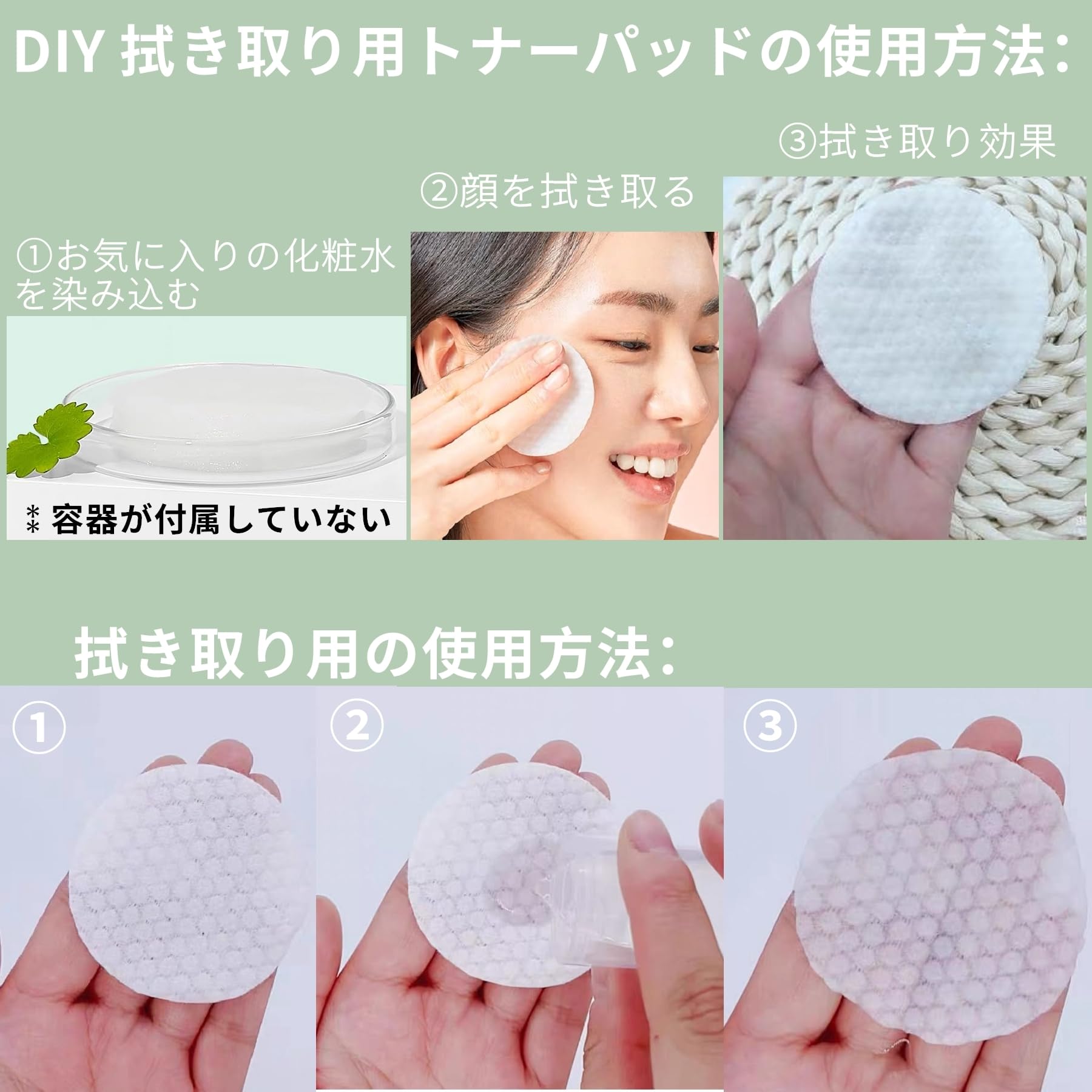 【幅6cm‐韓国コスメトナーパッドと同じサイズ】コットンパッドには日常の拭き取りに使え、ナーパッドの詰め替えにも使用できます。