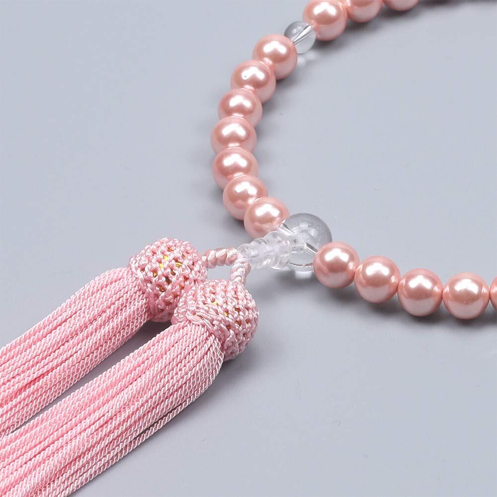 【セール】LEOBEE 貝パール 女性用数珠 マグネット式数珠袋付き 念珠 じゅず 手作り念珠 数珠ブレスレット 葬式 葬儀 墓参り 法事 念誦 全ての宗派で使用頂け (ピンク貝パール)