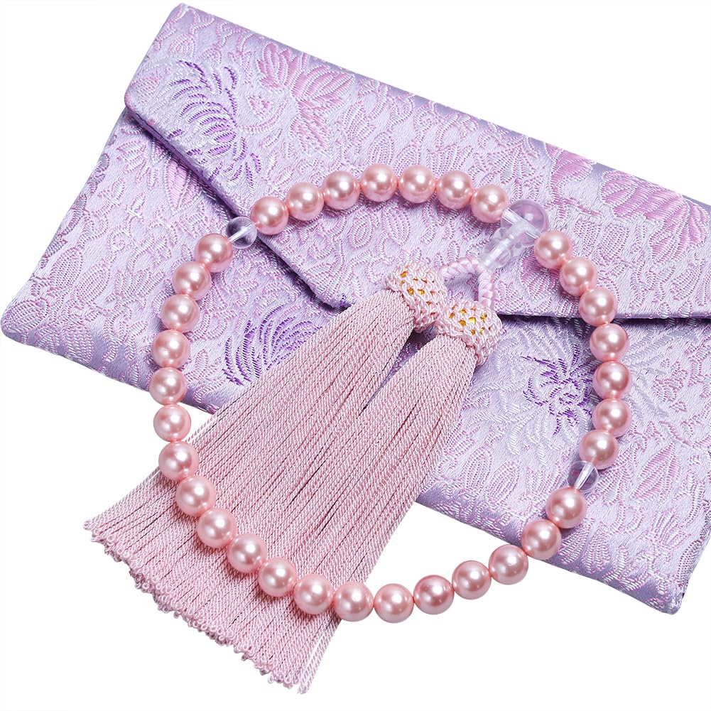 LEOBEE 貝パール 女性用数珠 マグネット式数珠袋付き 念珠 じゅず 手作り念珠 数珠ブレスレット 葬式 葬儀 墓参り 法事 念誦 全ての宗派で使用頂け (ピンク貝パール)