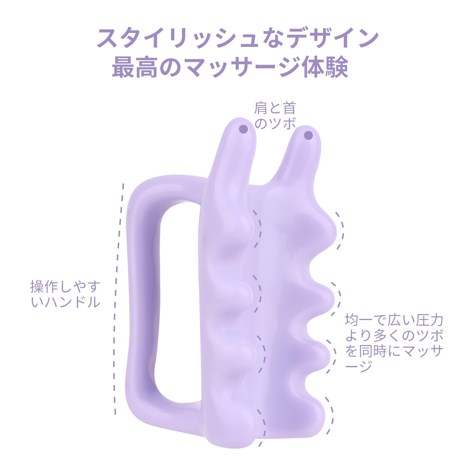 【二列ツボポイント】2列のツボポイントがより広範囲の圧力を提供します。取っ手の利点は、両列のツボに均等に力がかかることです。