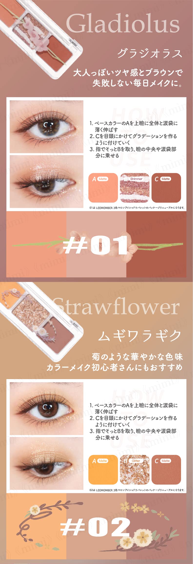 日本公式 LEEMEMBER 3色フローラアイパレット アイシャドウ キラキラ デイリーメイク 中国コスメ (#JM03 ガーベラ)