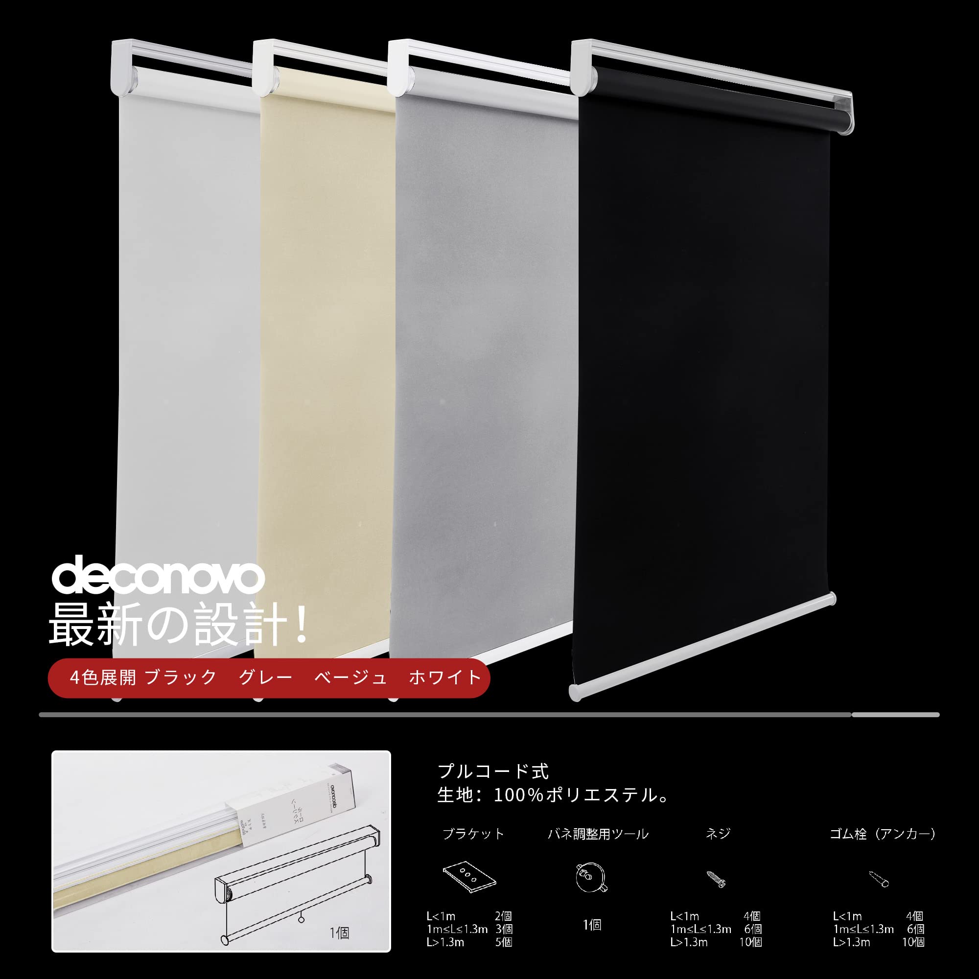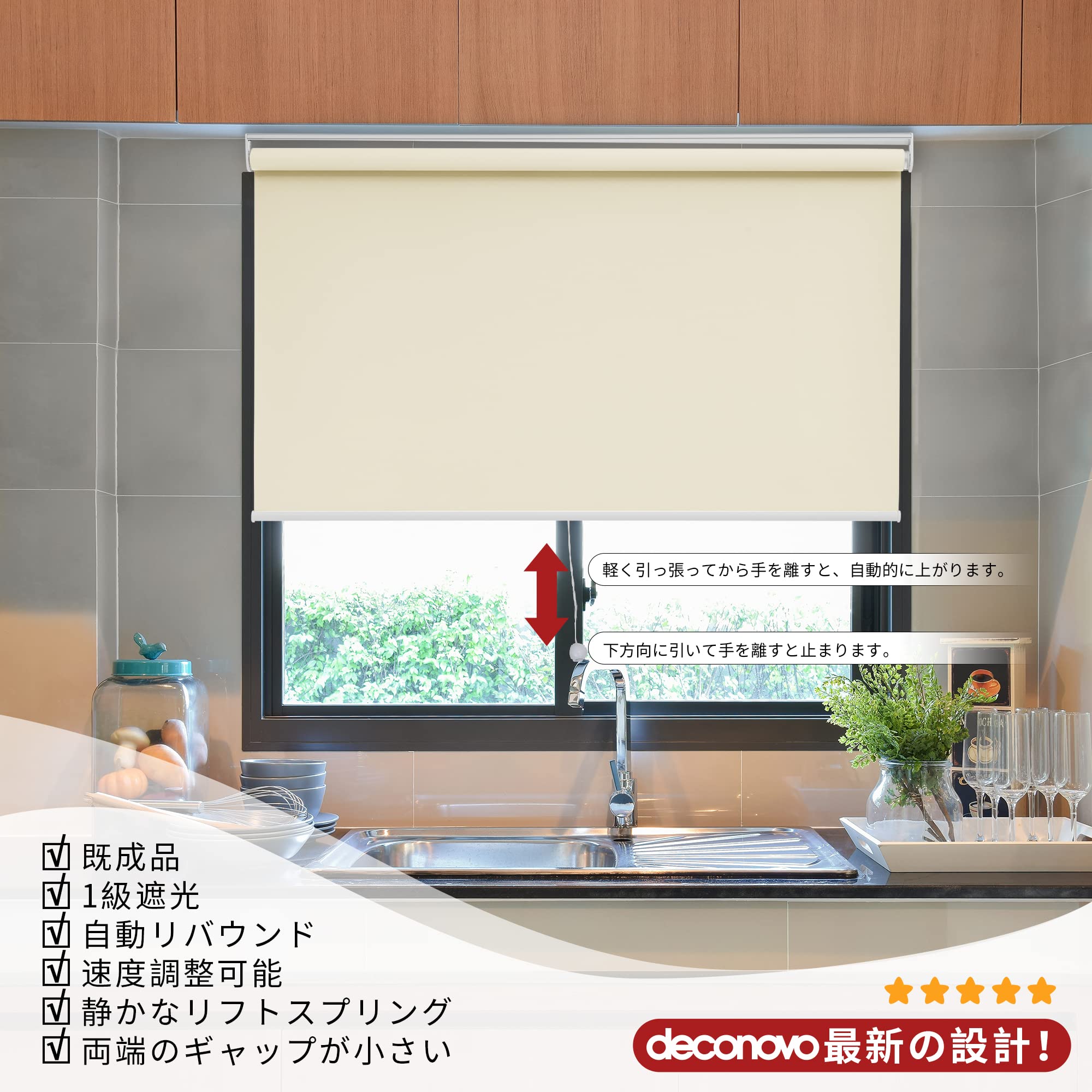 Deconovo プルコード式 ロールスクリーン 幅80cm 丈220cm ベージュ ロールカーテン 1級遮光 100%遮光 保温 断熱 遮熱 防音 防寒 UVカット