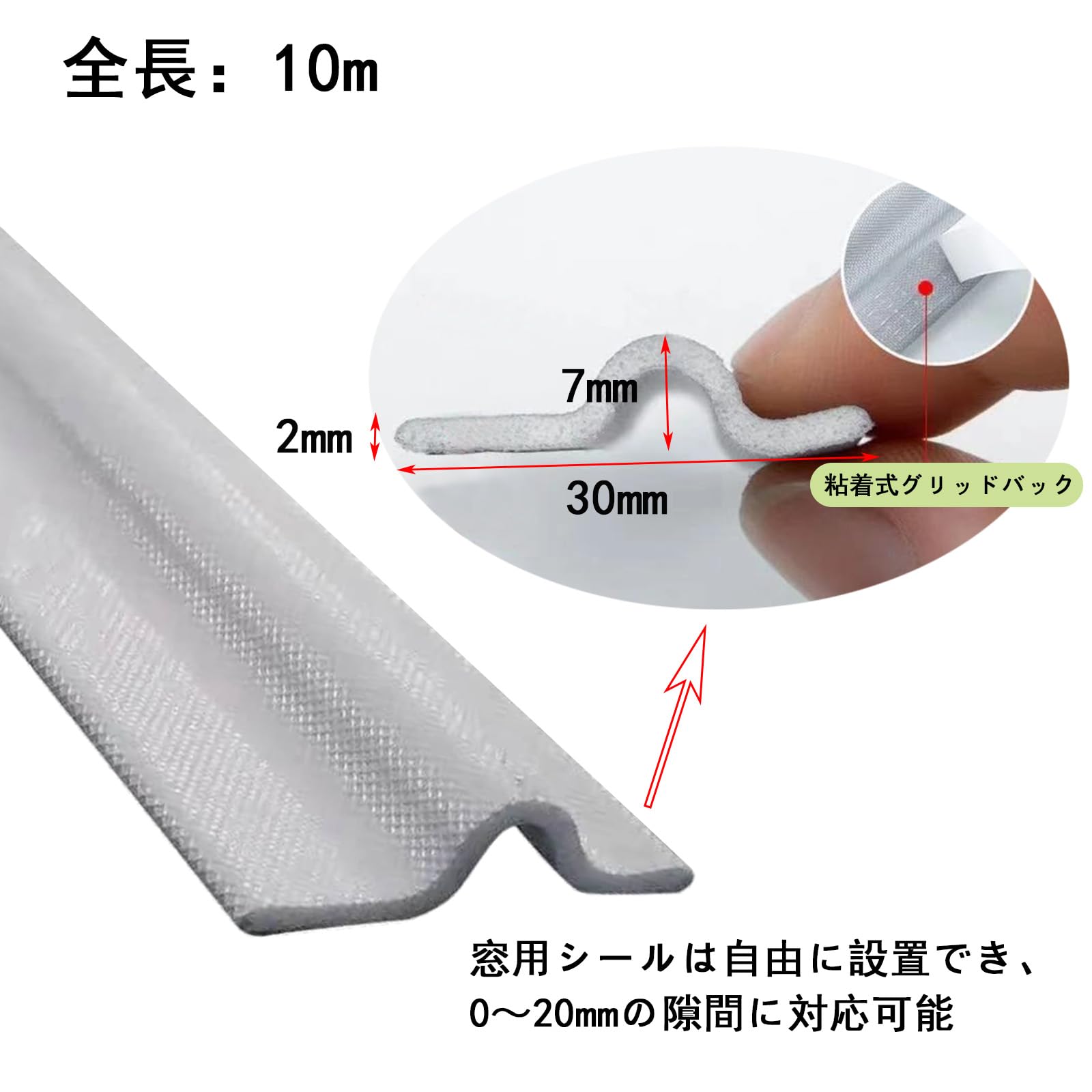 ☆【商品仕様】商品名:隙間テープ 素材:ナイロン、PUフォーム サイズ:全長10m×横幅3cm×高さ0.7cm 厚さ0.2cm 色:ブラック。パッケージ内容:防音マット(ブラック)*10m、取扱説明書*1。注:本製品は新品ですので、最初のうちは裏面のテープが破れにくいです。 どうしても破れない場合は、ハサミで少し部分を引いてから再度ご使用ください。梱包・輸送時に折り目がつきますが、開梱後、時間の経過とともに折り目は消え、製品の使用に支障はございません。