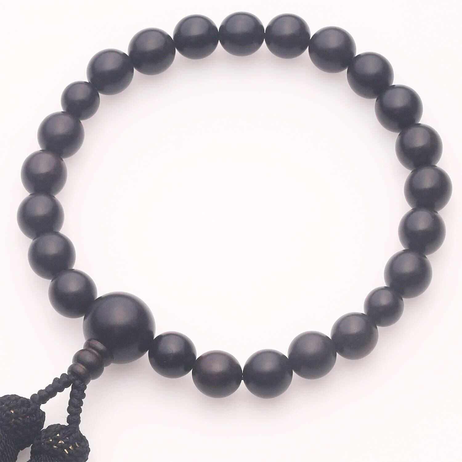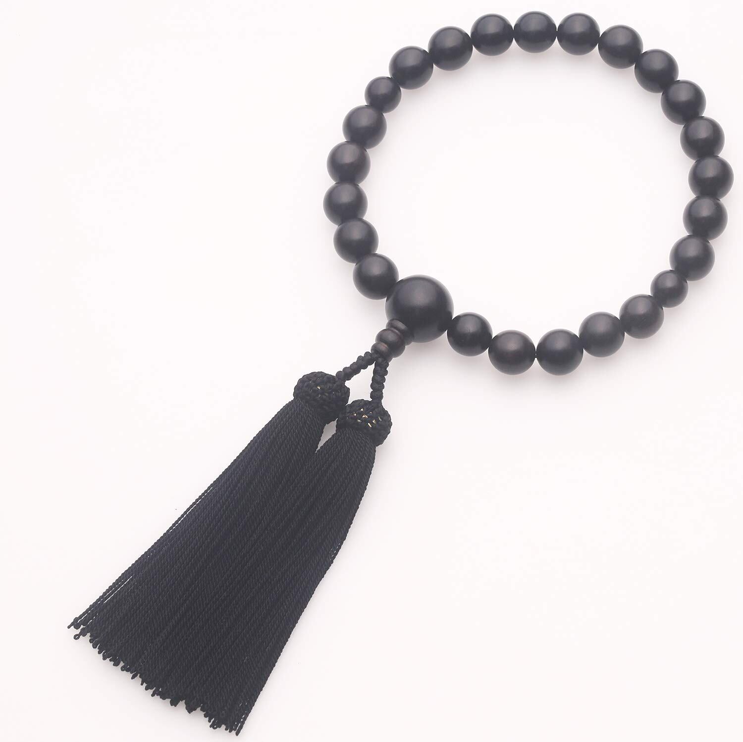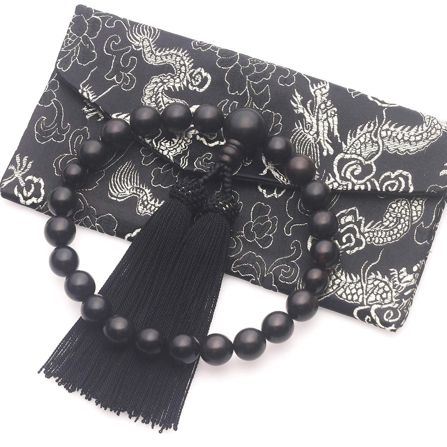 LEOBEE 数珠 男性用 縞黒檀(艶消) マグネット式数珠袋付き 全ての宗派でお使い頂けます