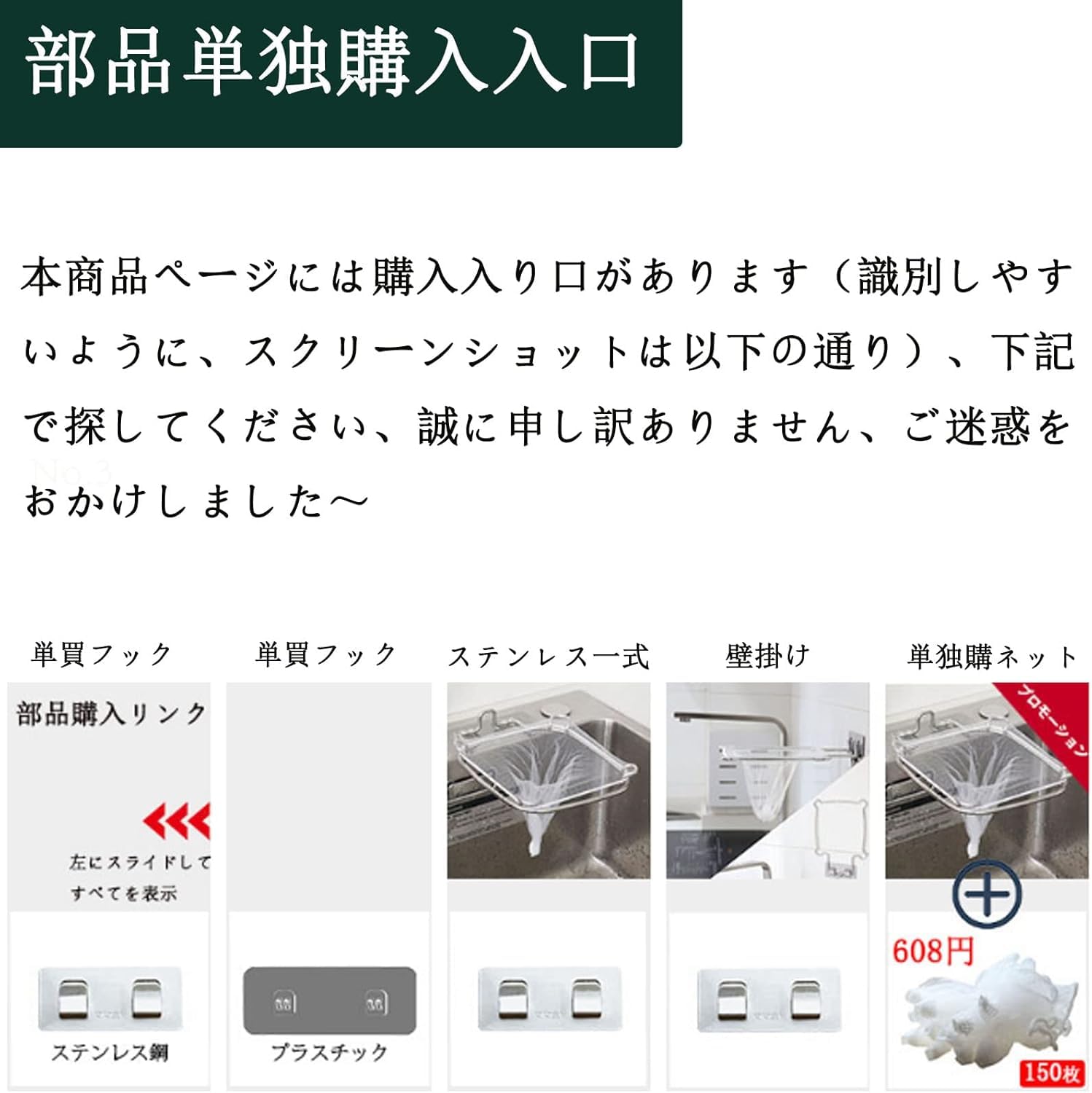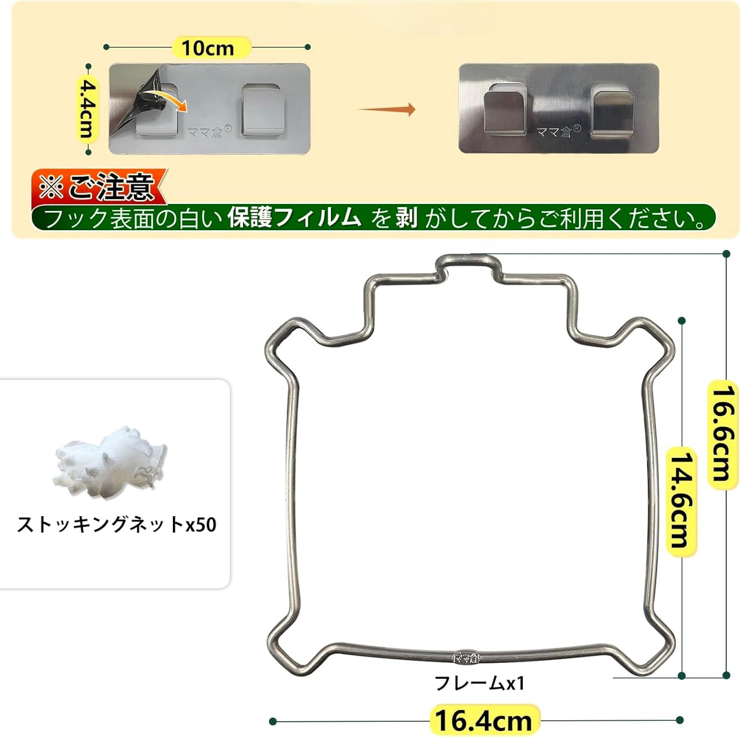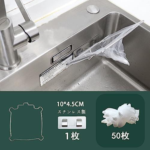 (※ご注意※:フック表面の白い保護フィルムを剥がしてからご利用ください。)【商品】①本体(シンク内壁 対応)1个 ②フック1枚(ステンレス、破断防止) ③ネット50枚(厚く底) ④日本語説明書 ⑤1年間フック5年本体質保