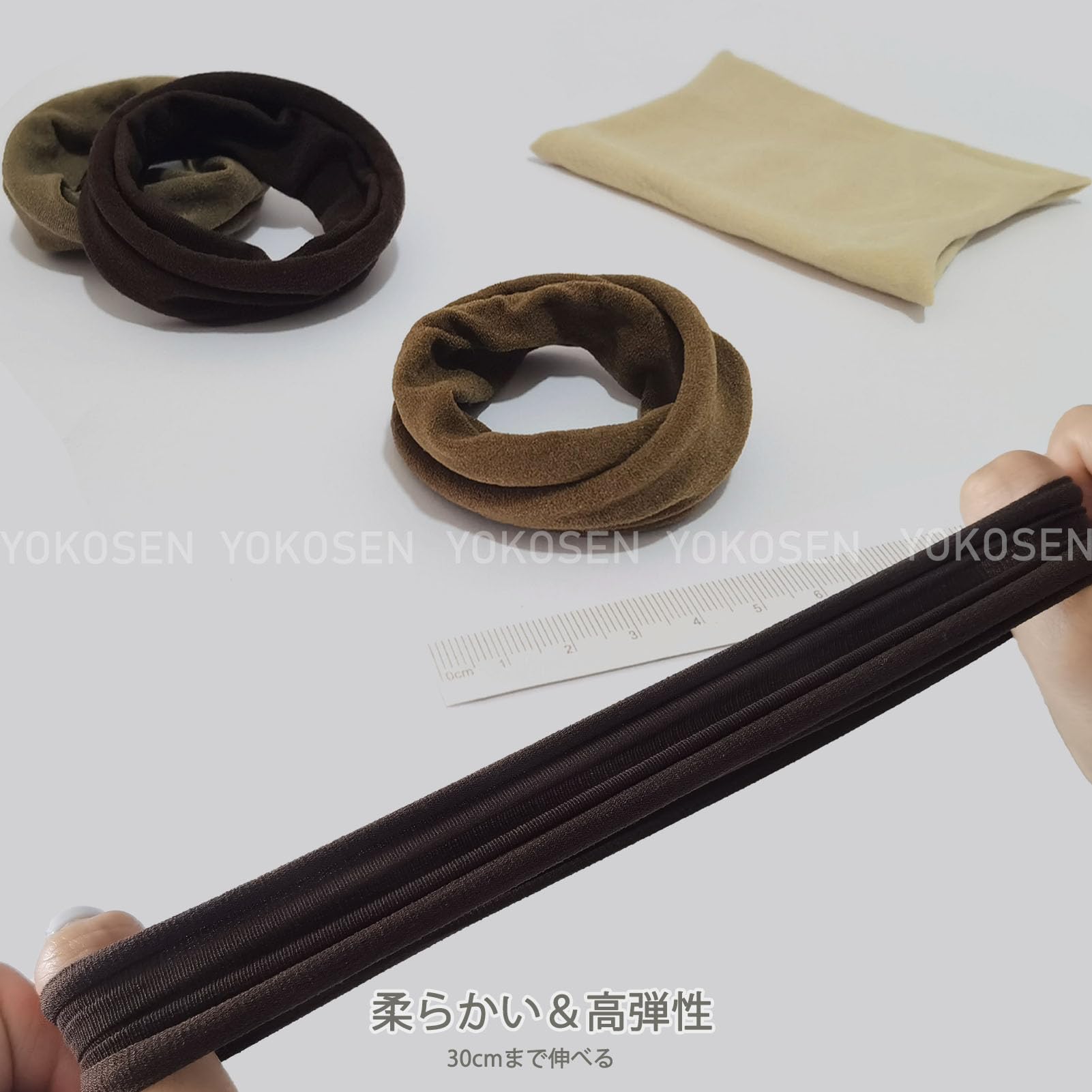 【高い実用性】よく伸べるヘアゴムで,耐久性に優れています。表面がナイロンで、内部が伸縮性の高い高品質ラバーで構成されていますので、30cmまで伸べます。髪をしっかり縛ります。お団子ヘアやポニーテールなど、毎日のヘアアレンジに便利です。どんな季節にも適しています!日常生活、仕事、運動、様々なシーンで活躍できます。友達、同級生、同僚、家族に贈るのにぴったりです。