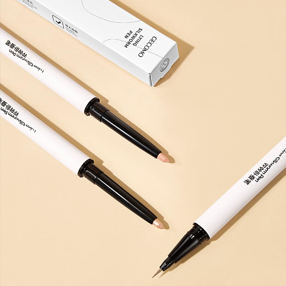 GECOMO 二重芯アイライナー 涙袋ライナー ウォータープルーフペンシルアイライナー 【ペンシル & リキッド 2in1】人気コスメ高密着 ダブルラインエキスパート 影用グレージュ ふたえを強調 リキッドアイライナー 描くふたえアイライナー 01#アプリコット