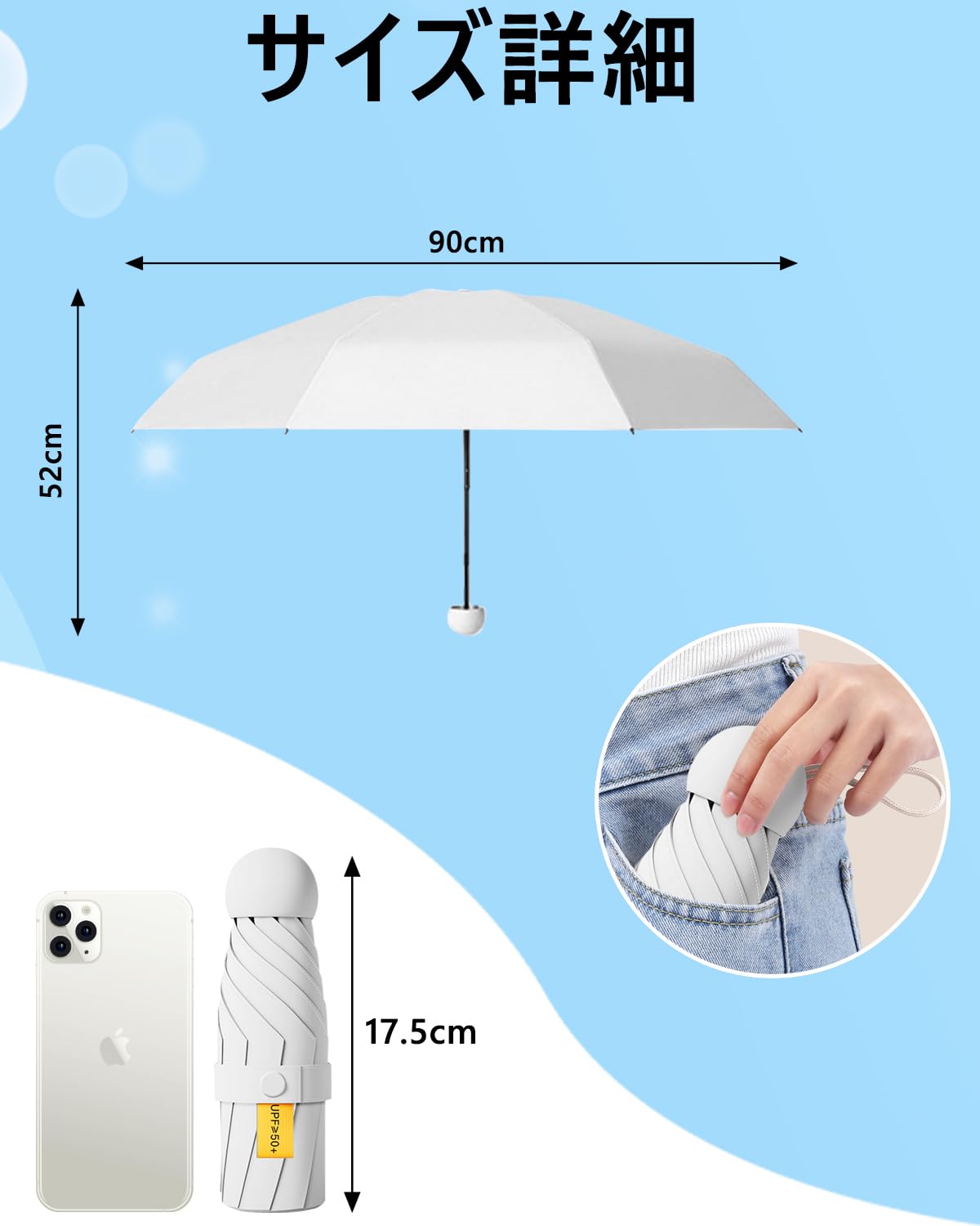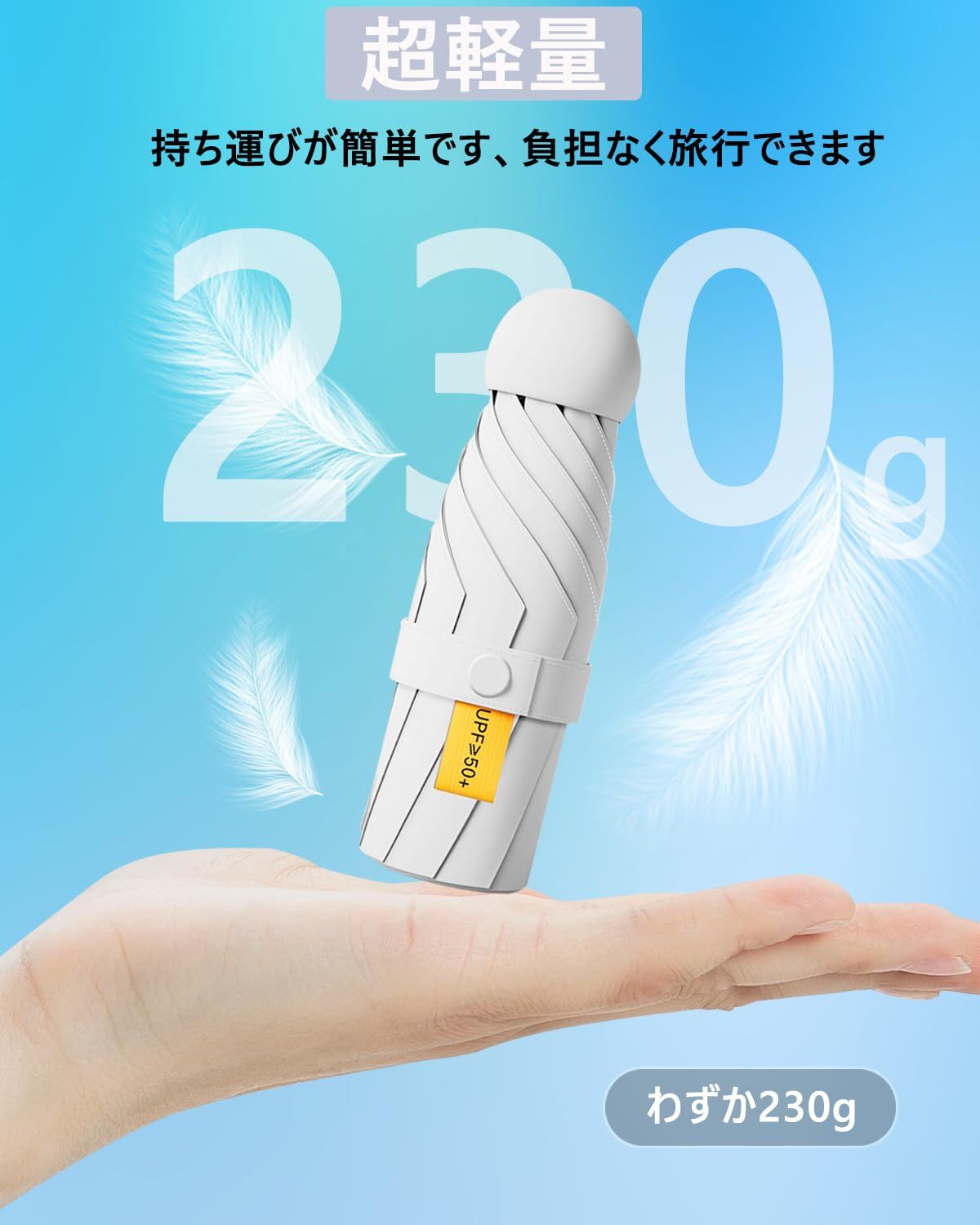 【超軽量で持ち運びやすい】折りたたみ日傘のシンプルで軽いデザインなので、カバンに入れやすいです。 折り畳むと長さは17.5cm、重さは約230gで持ち運びにとても便利!雨の日も雪の日も晴れの日も全天候で使用可能です。 男女兼用の折りたたみ傘です。 通学、通勤、遠足、旅行、出張などの場合に活用できます。